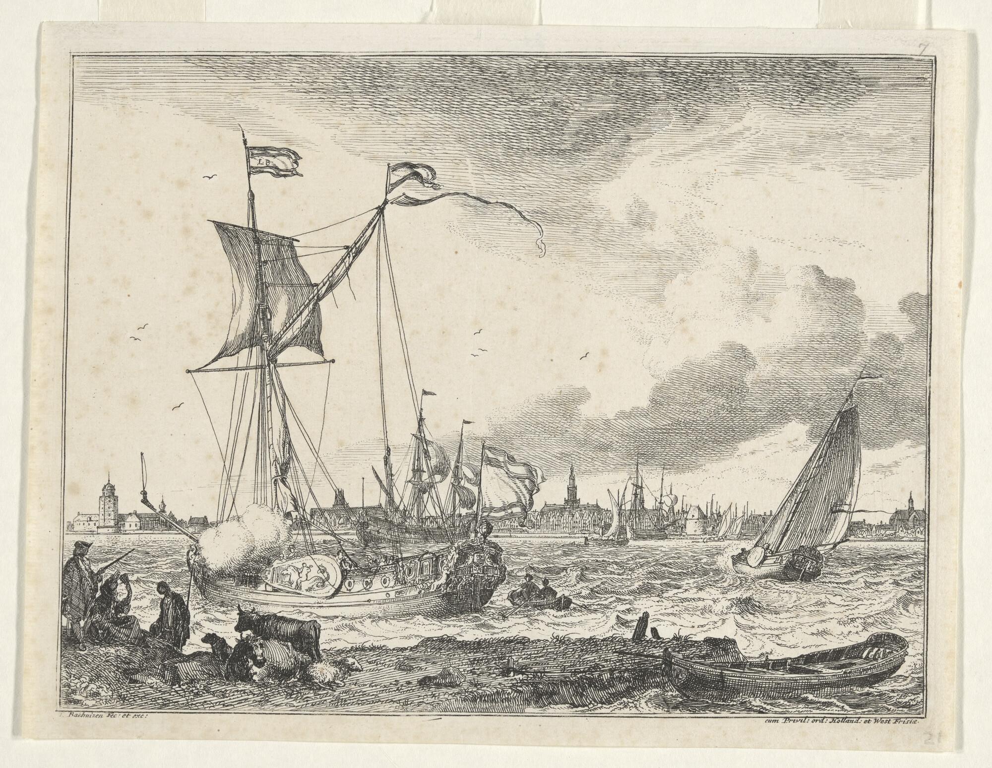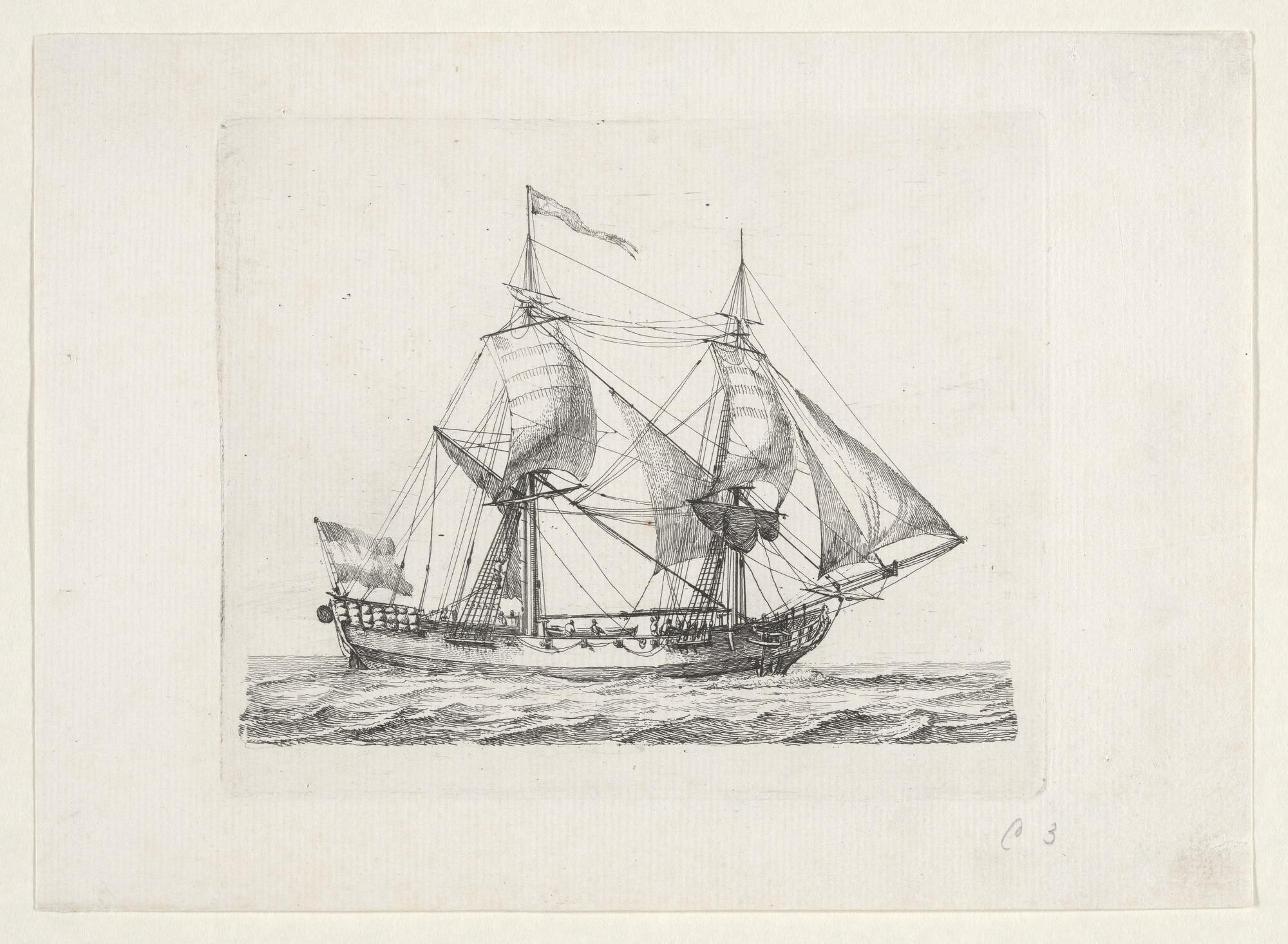 Prent van een admiraliteitsjacht