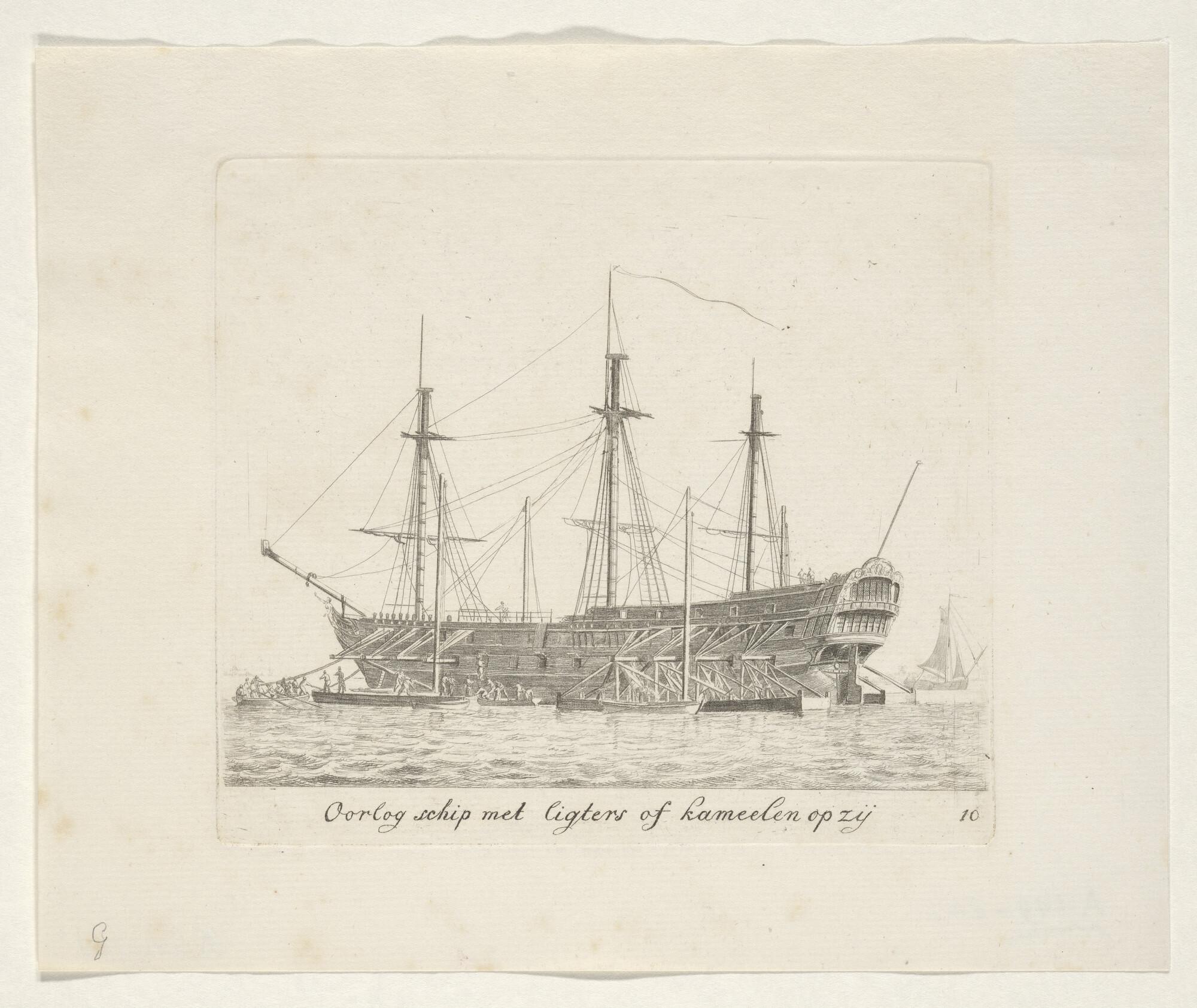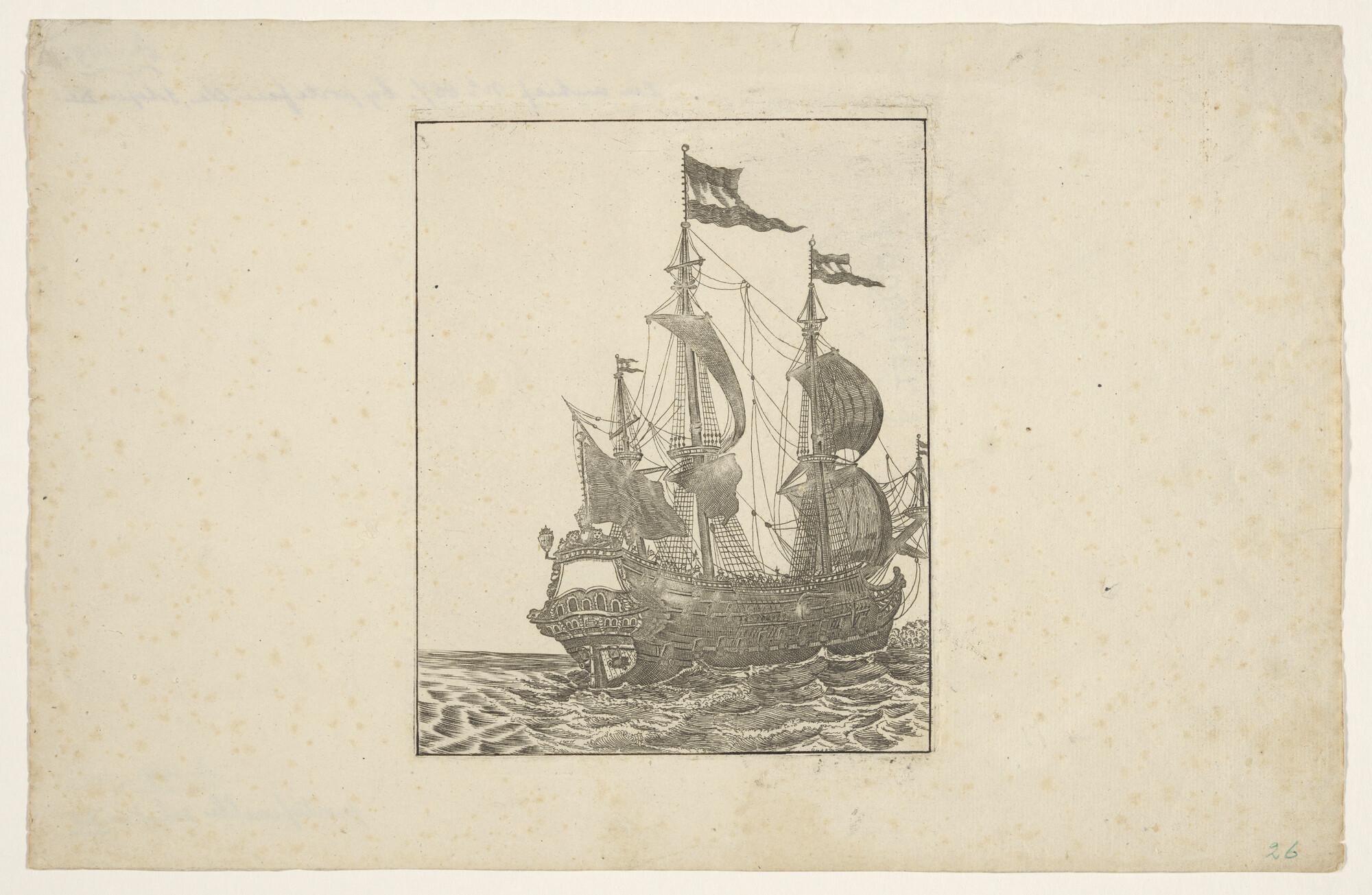 Prent van een oorlogsschip