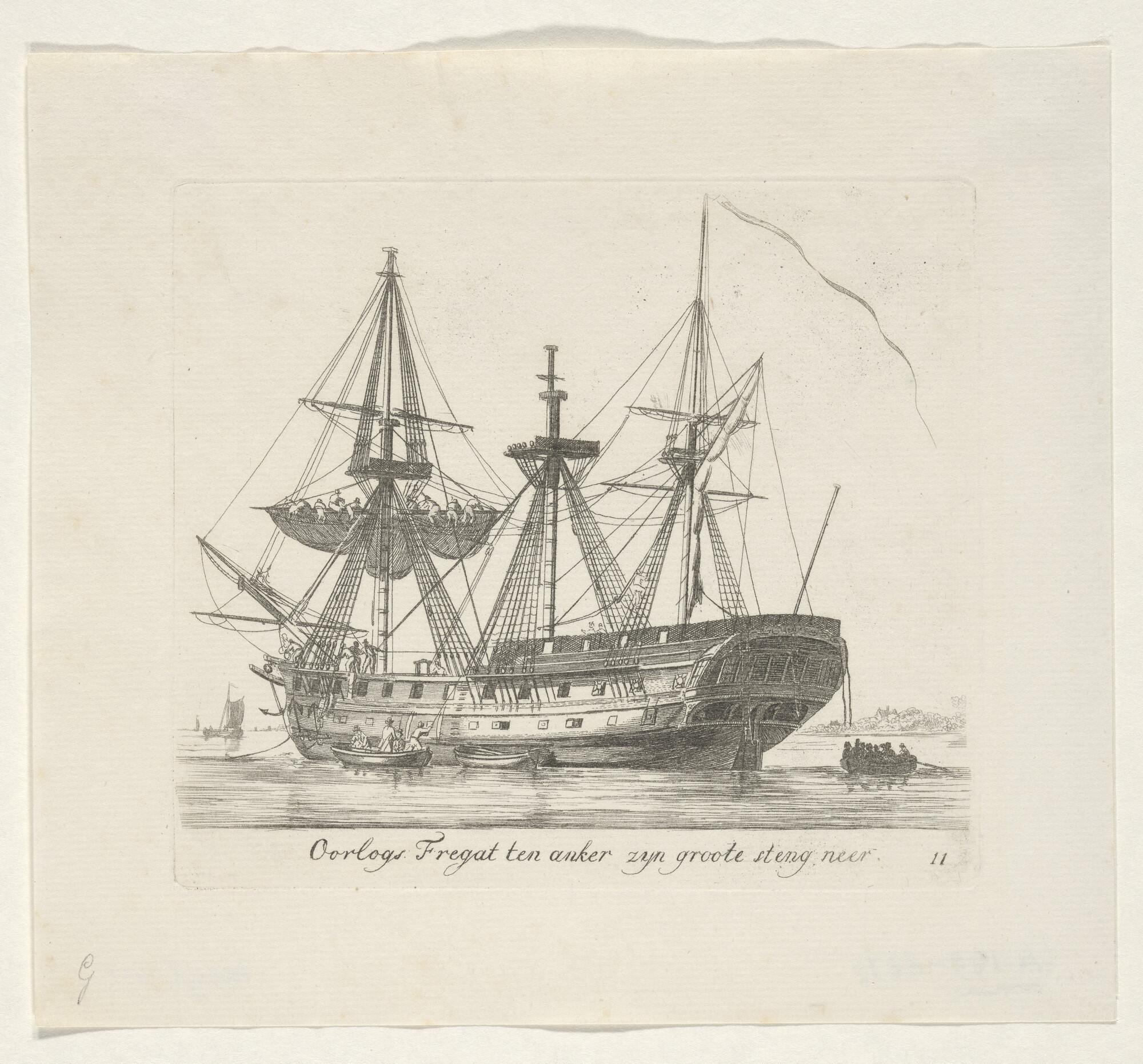 Prent van een oorlogsfregat