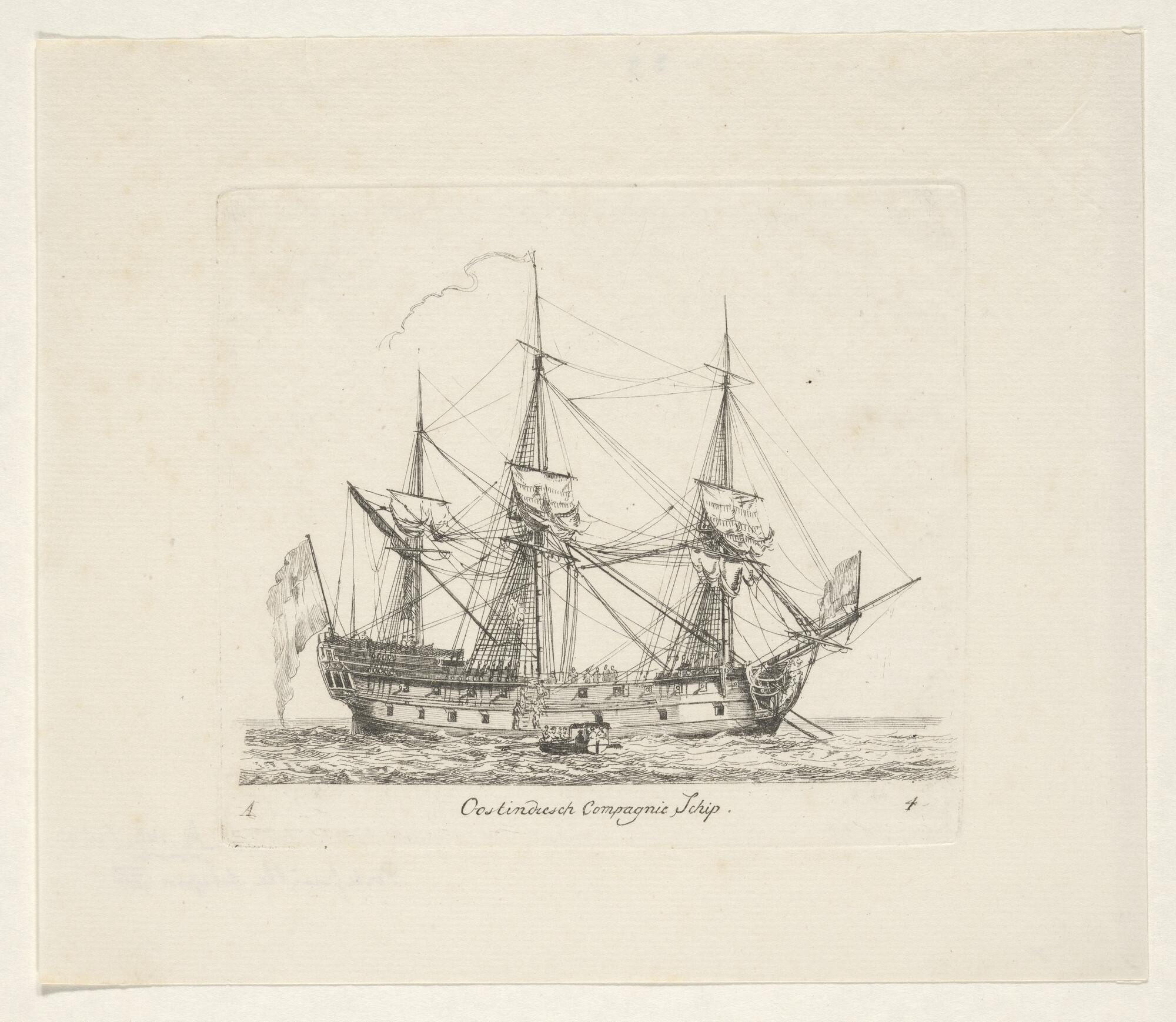 Prent van een retourschip van de VOC