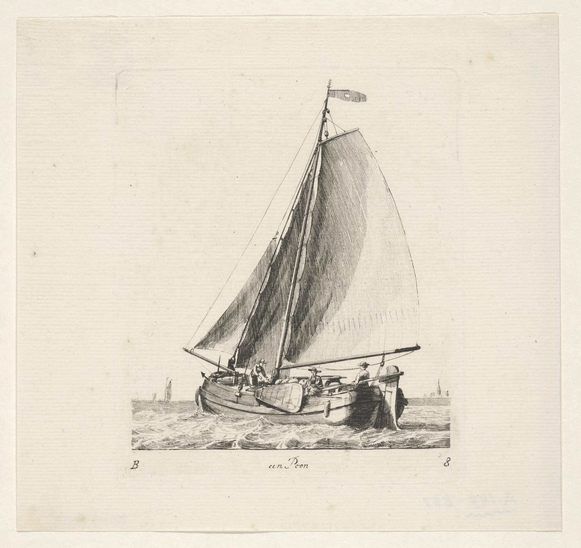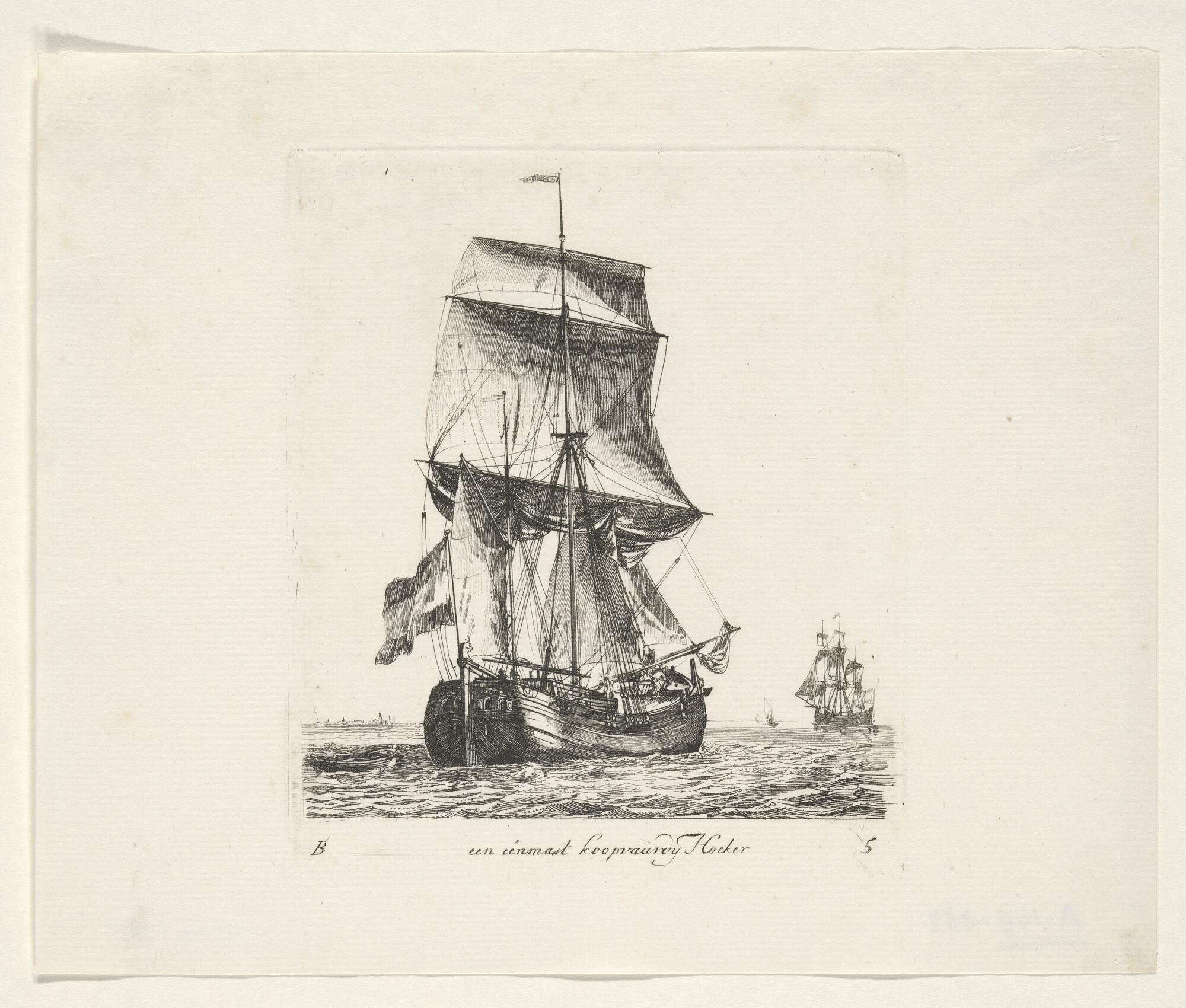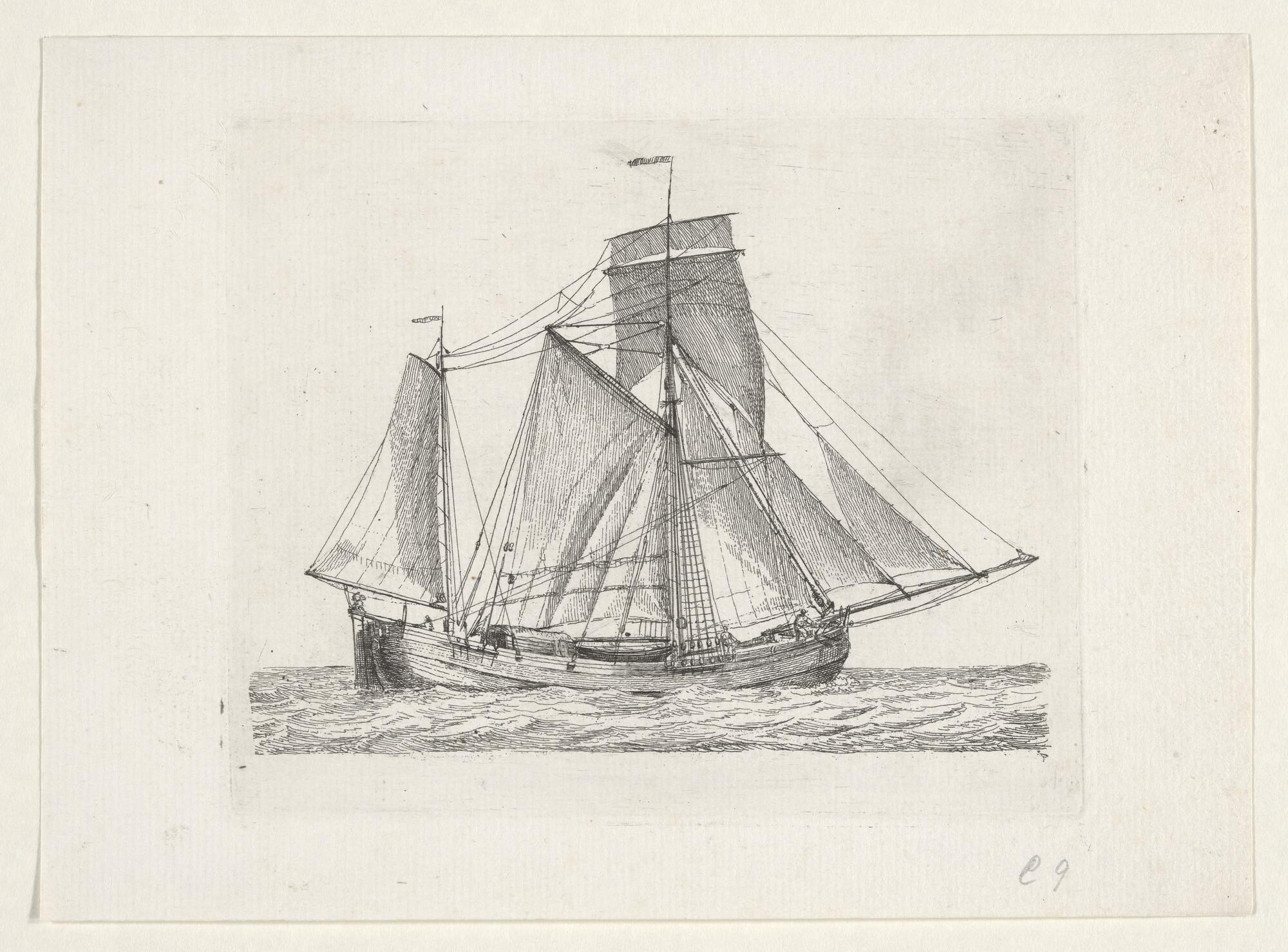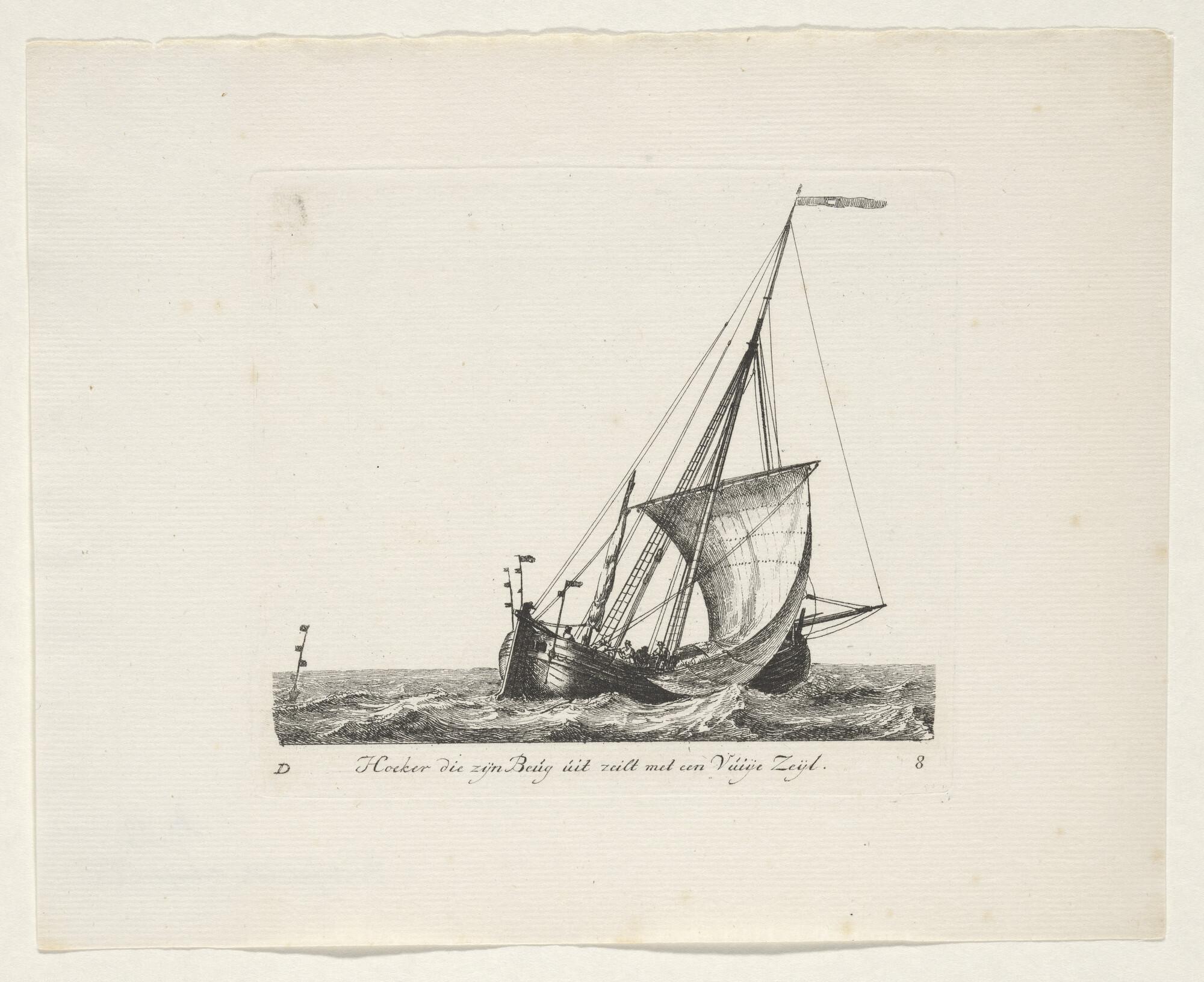 Prent van een eenmast-hoeker