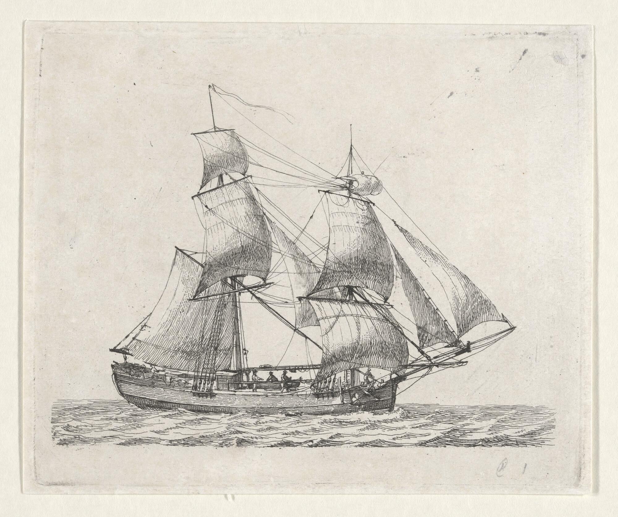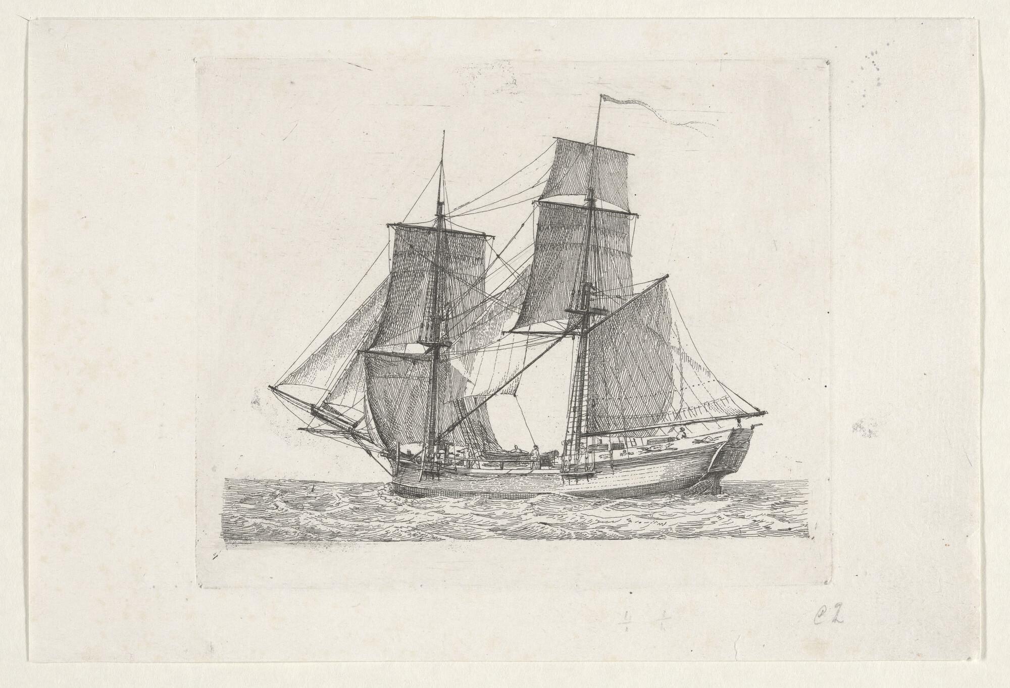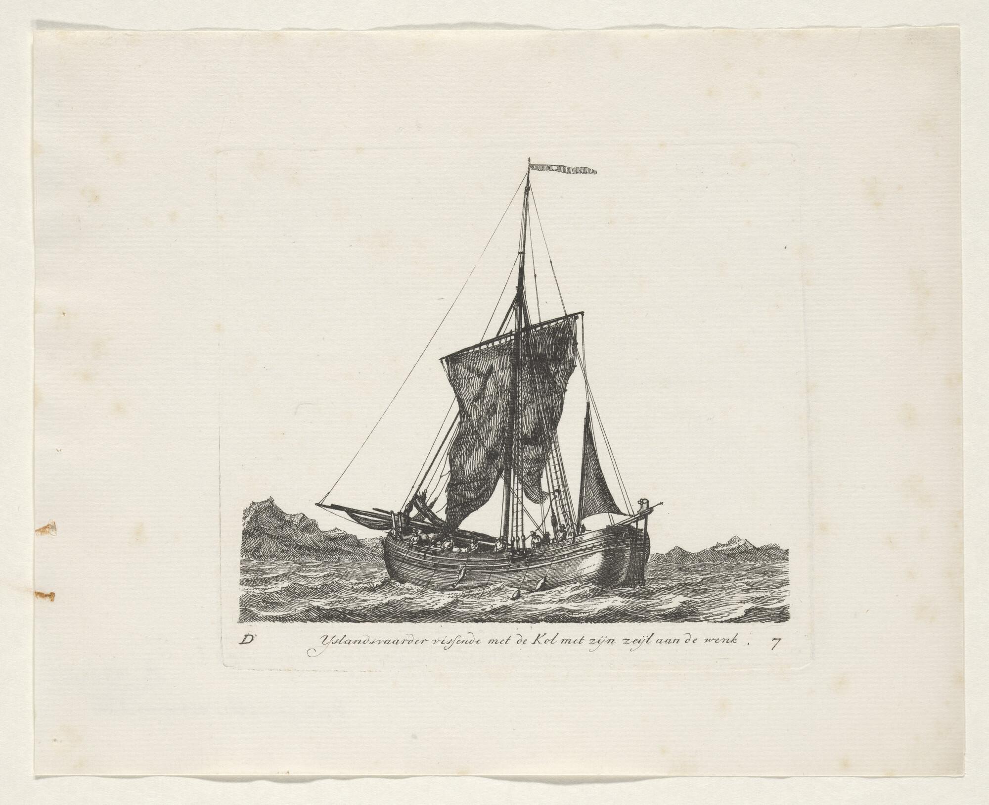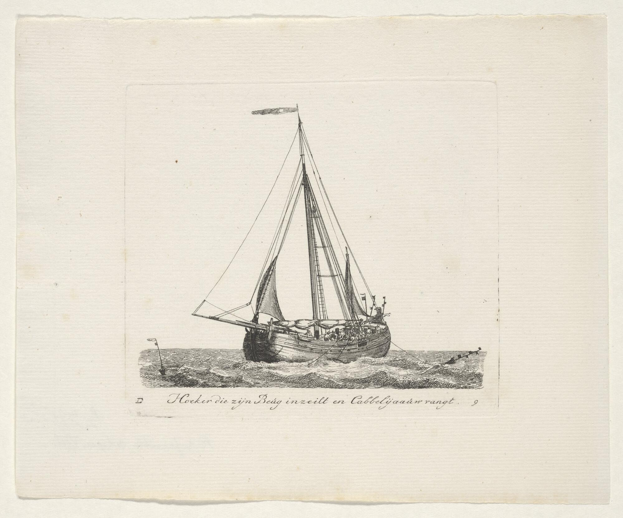 Prent van een eenmast-hoeker