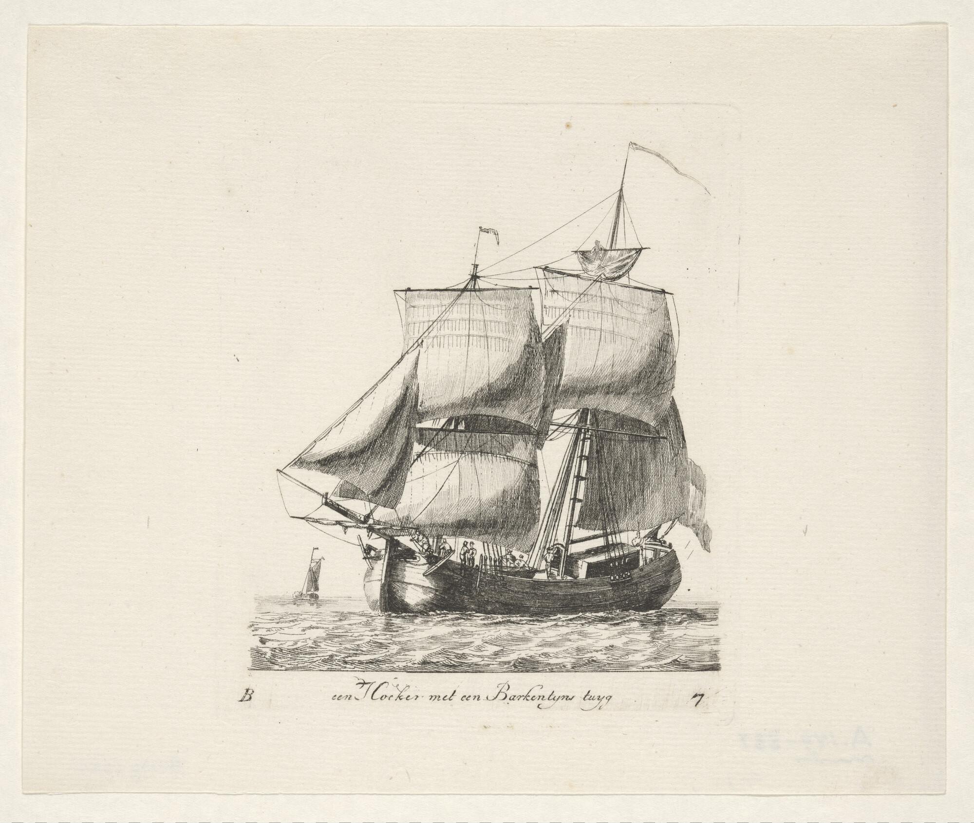 Prent van een hoeker met barketijnstuig