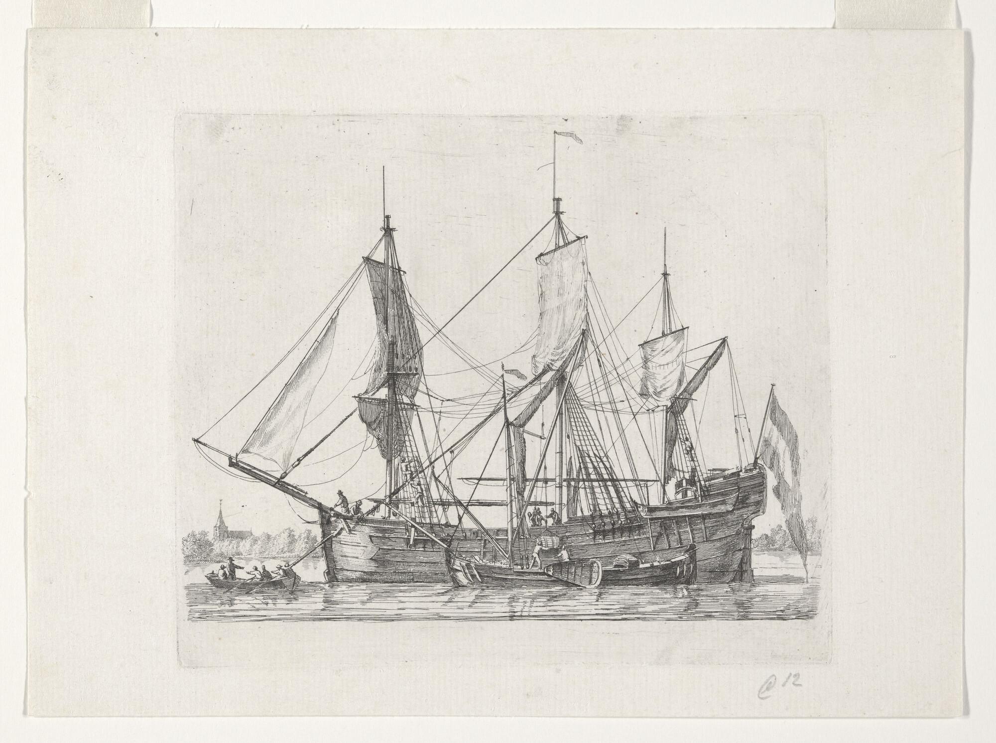 Prent van een bootschip