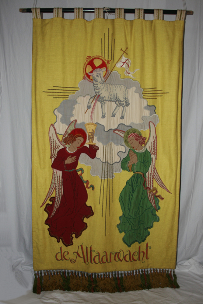 Vaandel met voorstelling van twee engelen en het Lam...