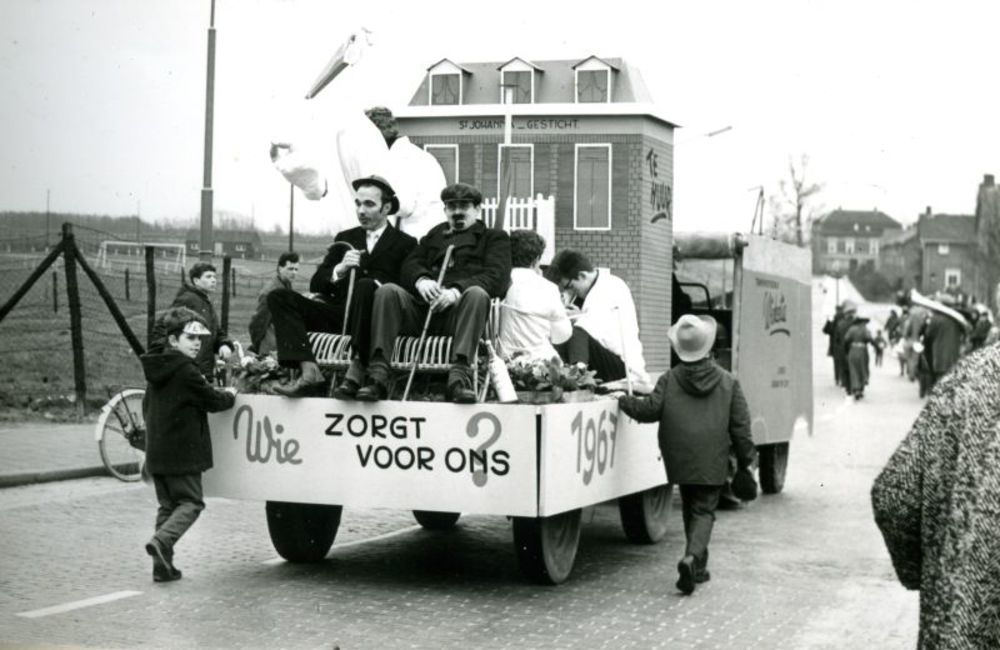 Zwart-wit foto van de carnavalsoptocht in Lobith op ...