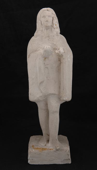 Ontwerp in gips voor natuurstenen beeld, staande man...