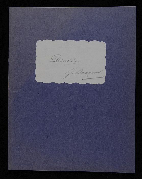 Schoolschrift, gelinieerd met paarsblauwe kaft, "J. ...