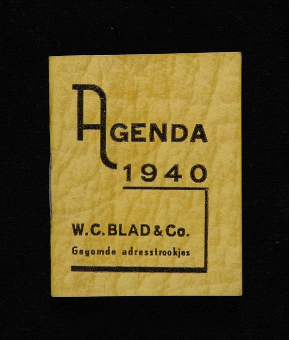 Zeer kleine agenda met een geel reliëfkartonnen kaft...