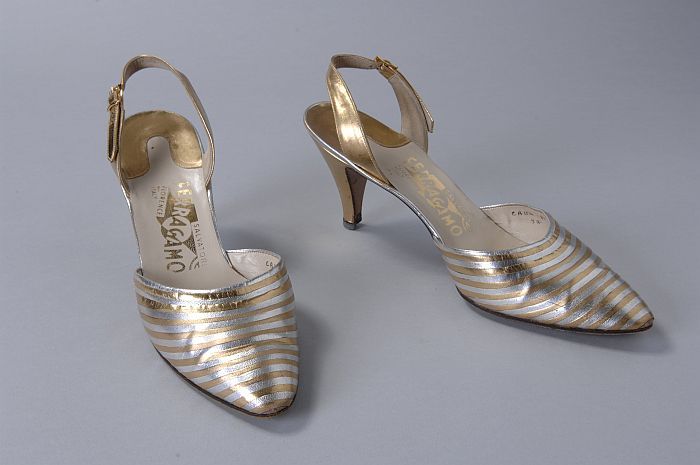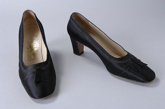 Zwarte satijnen pumps met sierstrikje, "Salvatore Fe...
