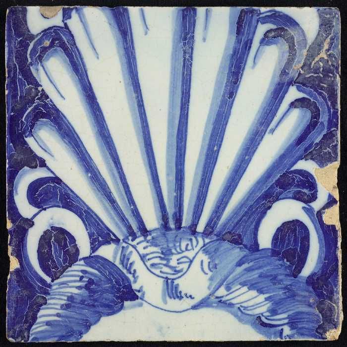 Tegel van schoorsteenpilaster, blauw op wit, deel va...