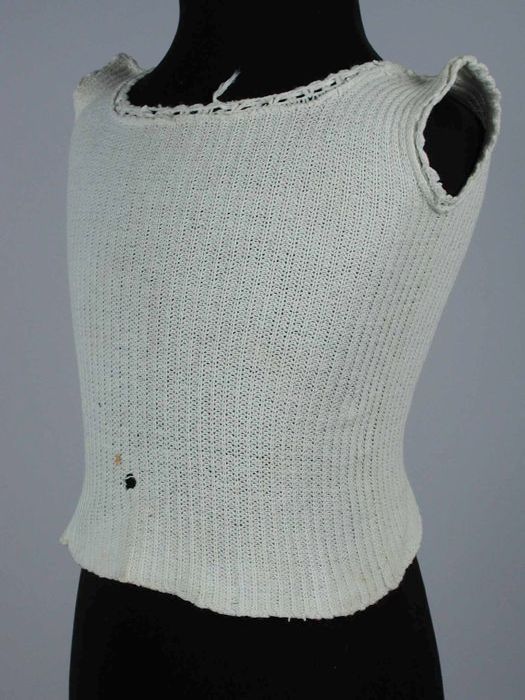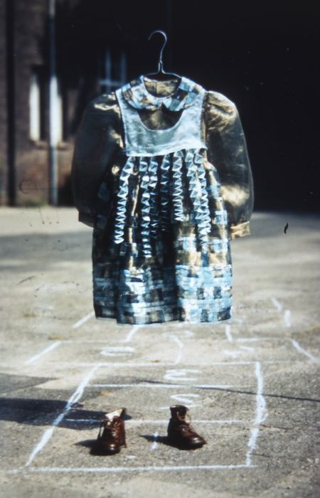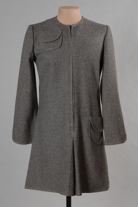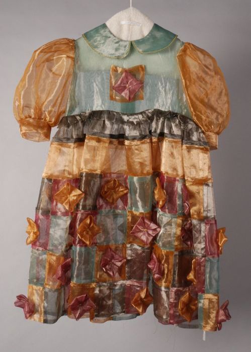 Kinderjurk van gele wol, ronde hals en pofmouwen, me...