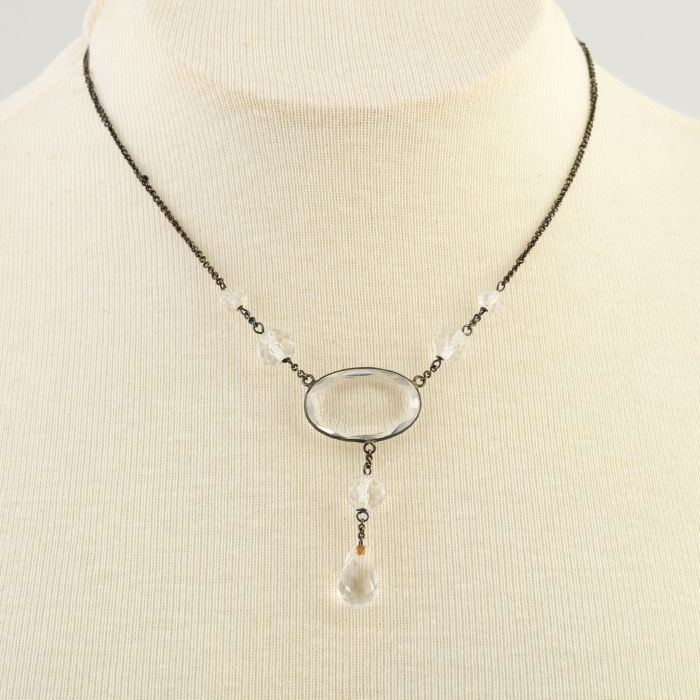 Ketting van blauw-groen gevlochten koord, gevat in z...