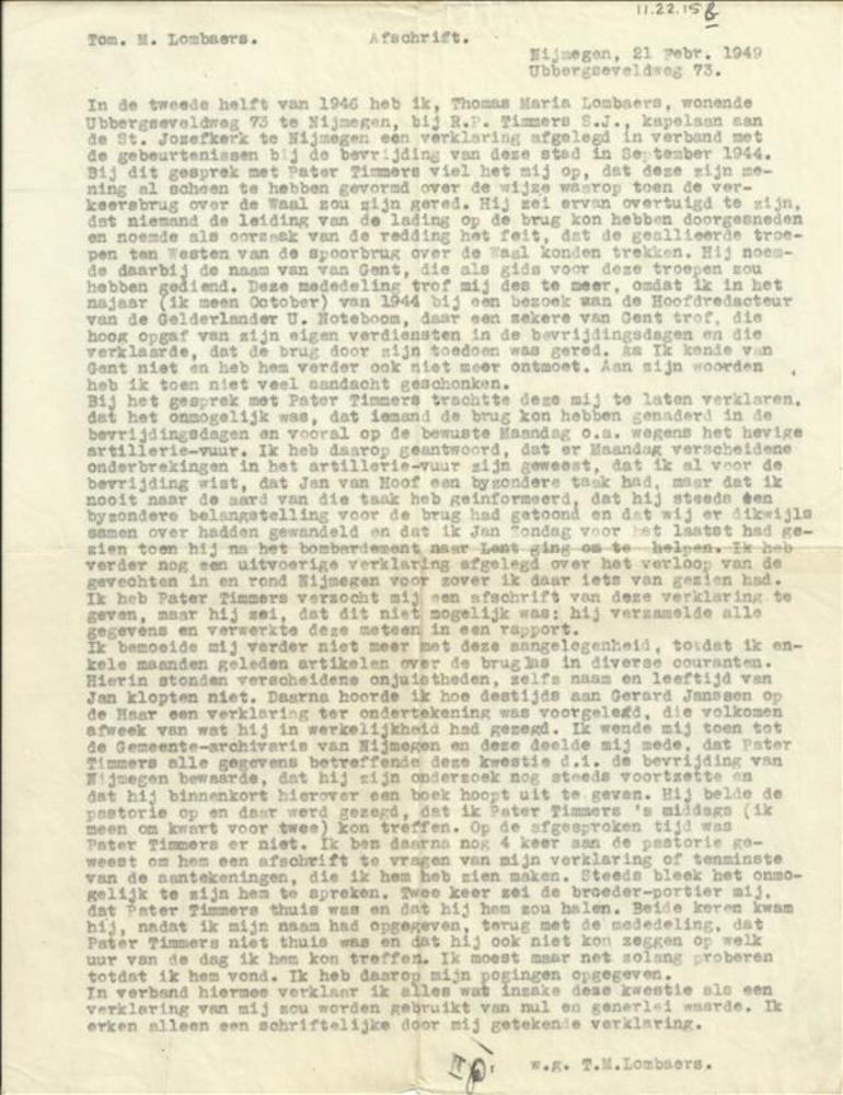 brief T.M.Lomaers, 21 februari 1949 met 2 afscrhiften
