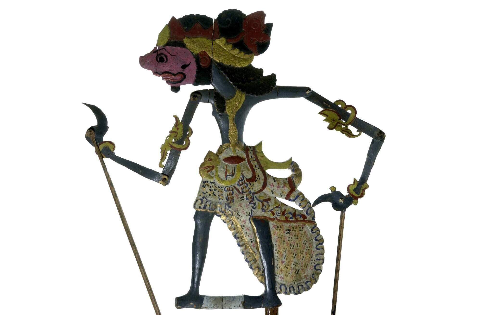 Houten kop van een wajangpop