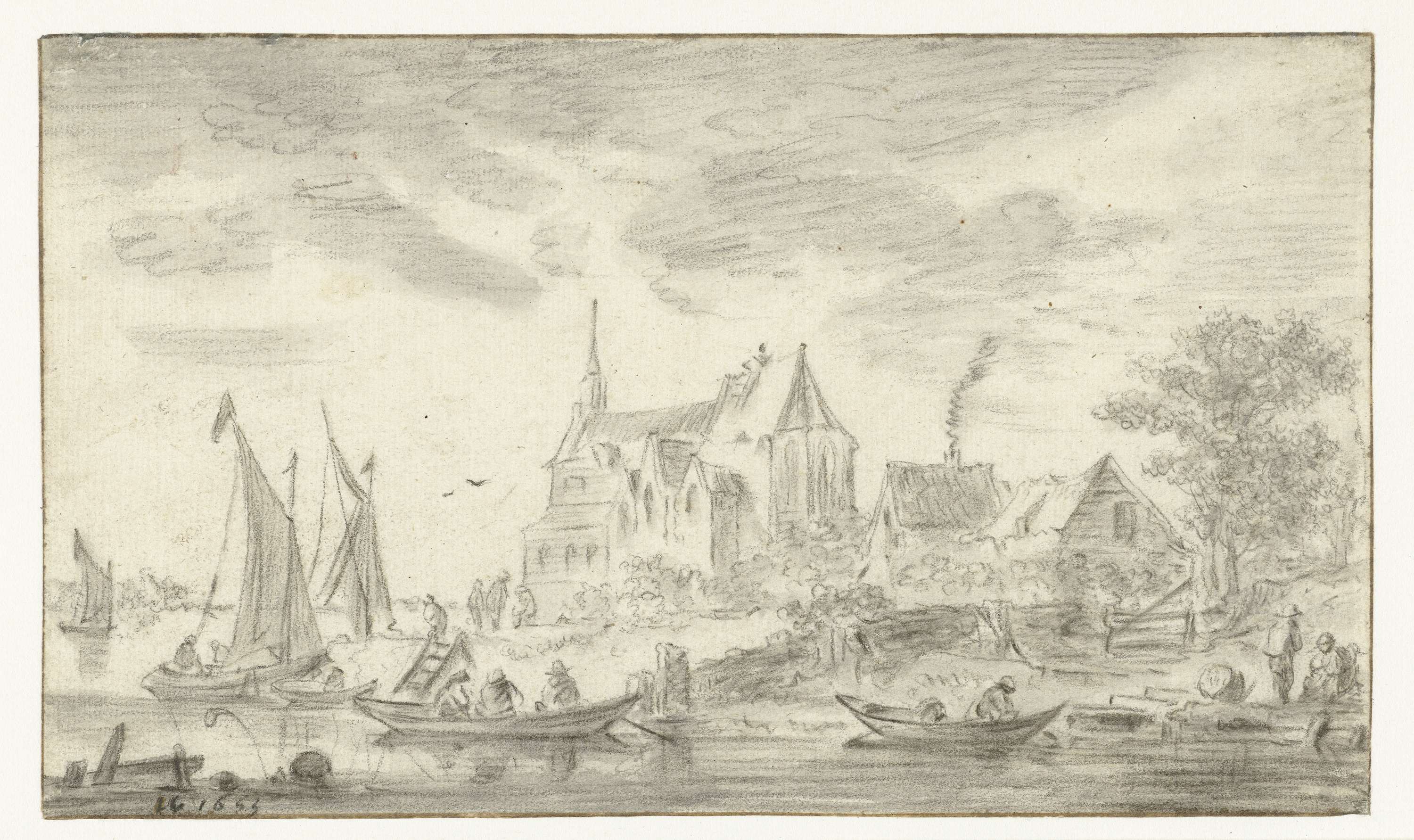 Zeedorp met kerk, mogelijk Alphen aan den Rijn