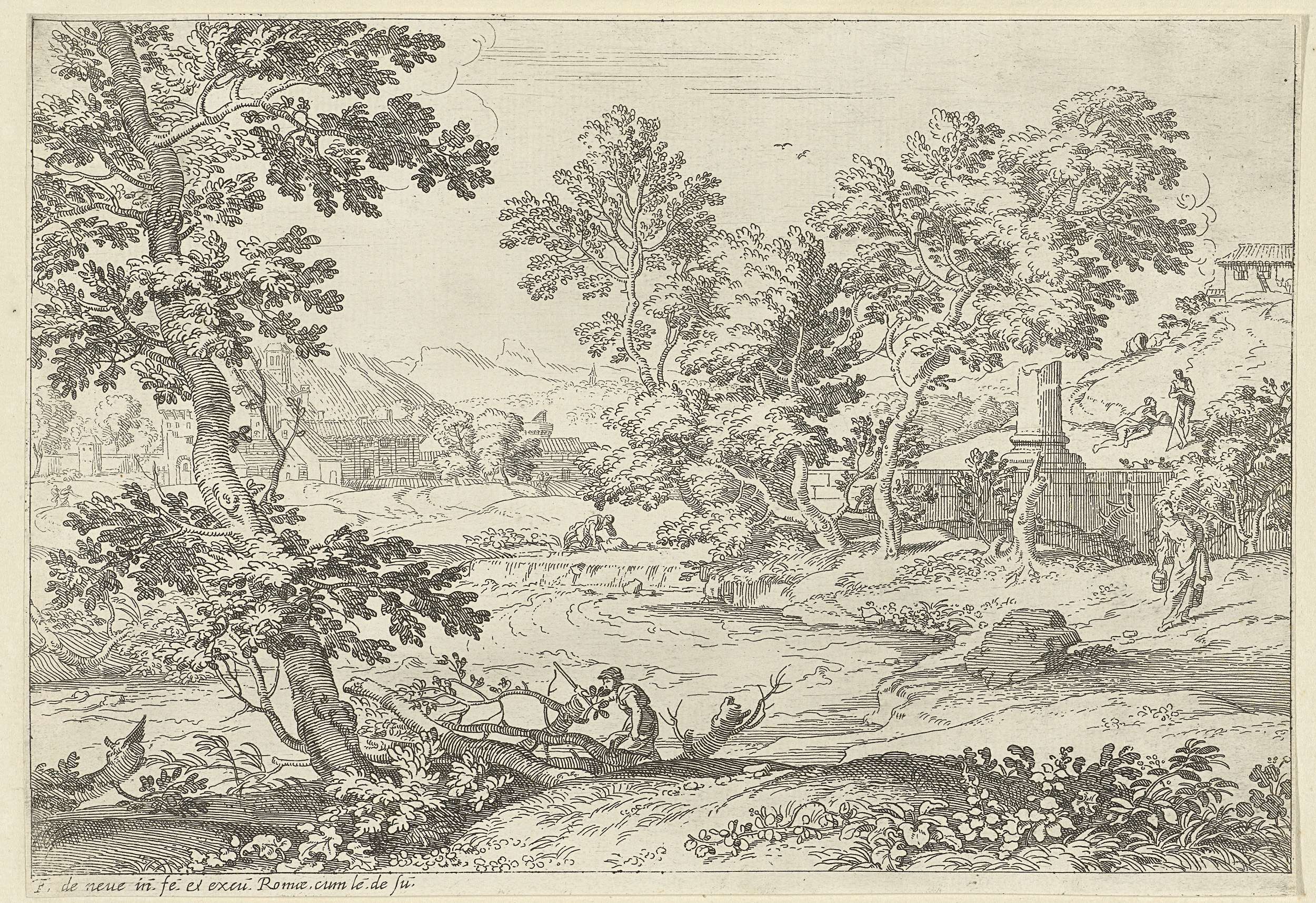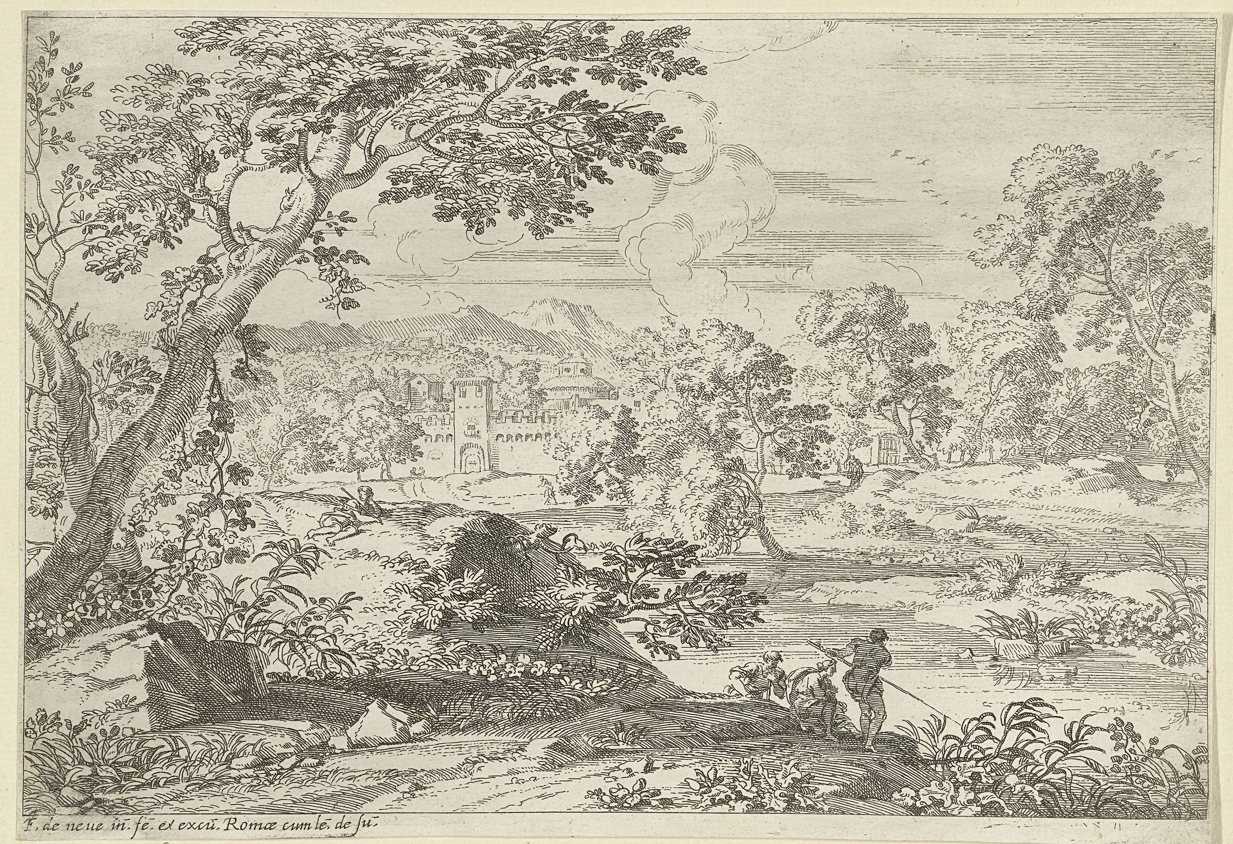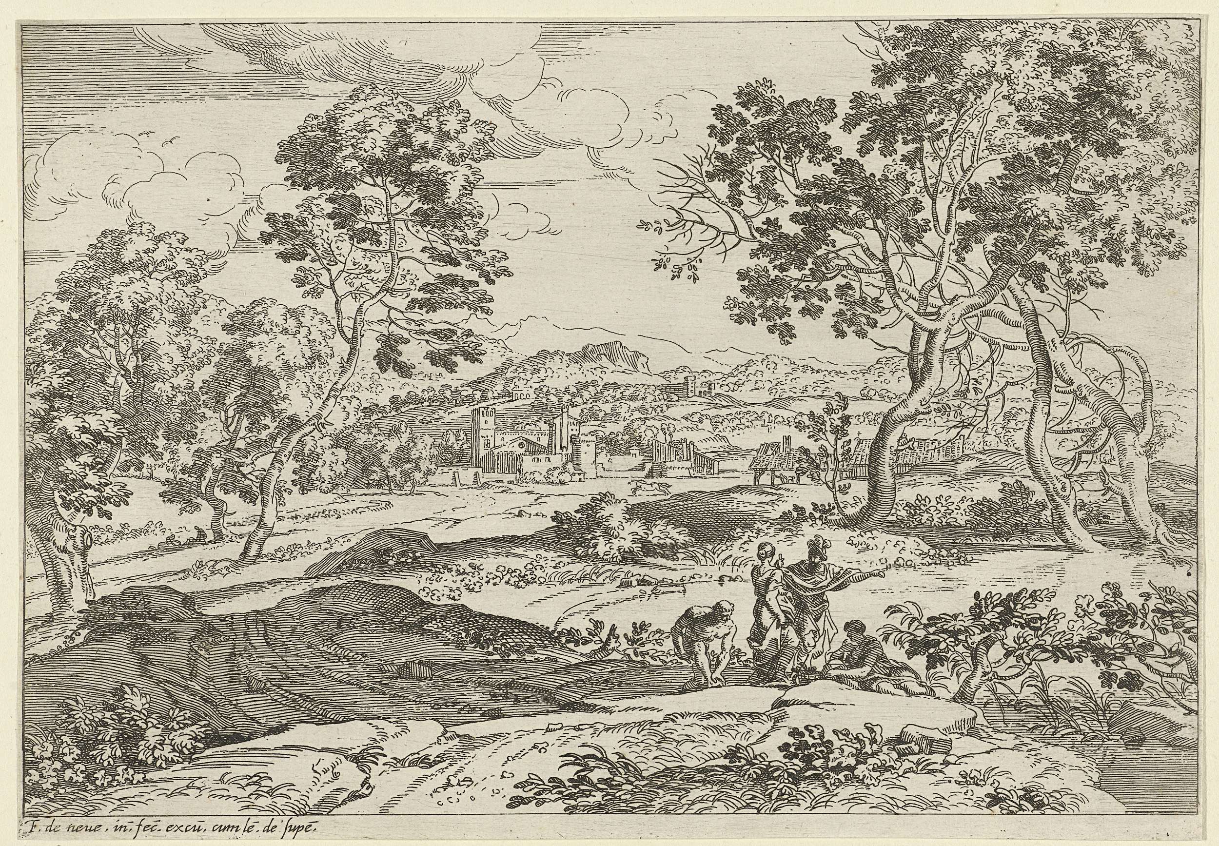 Landschap met vijf figuren