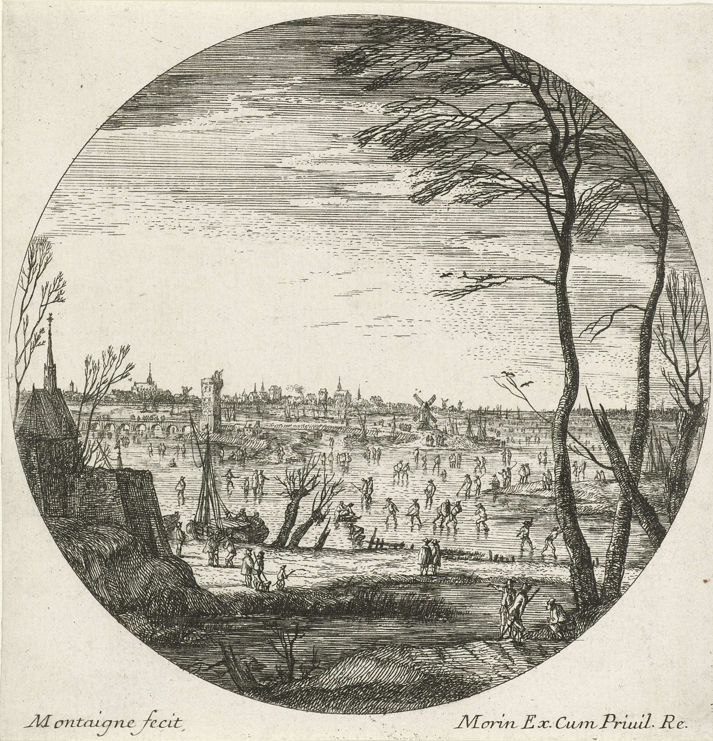 Winterlandschap met schaatsers