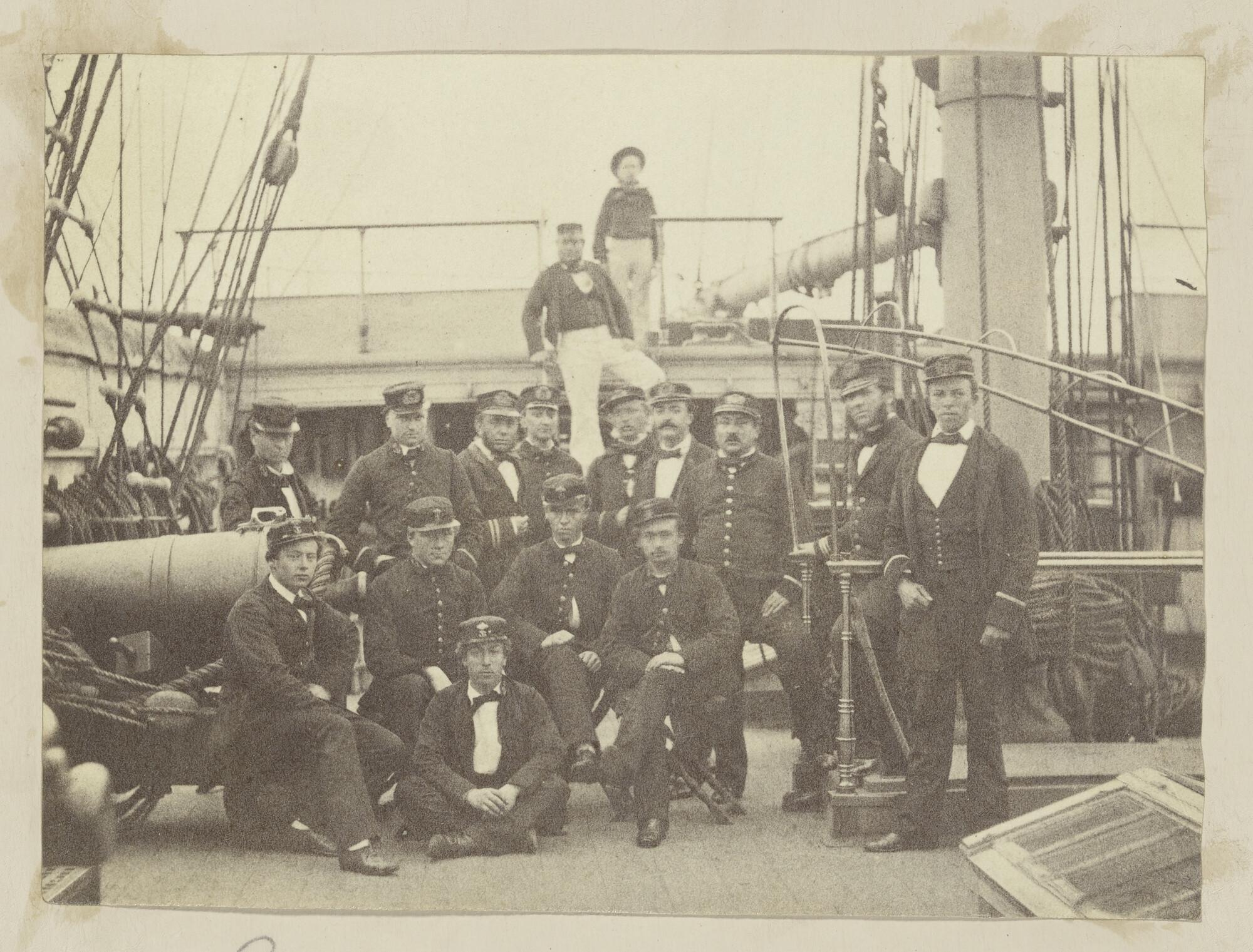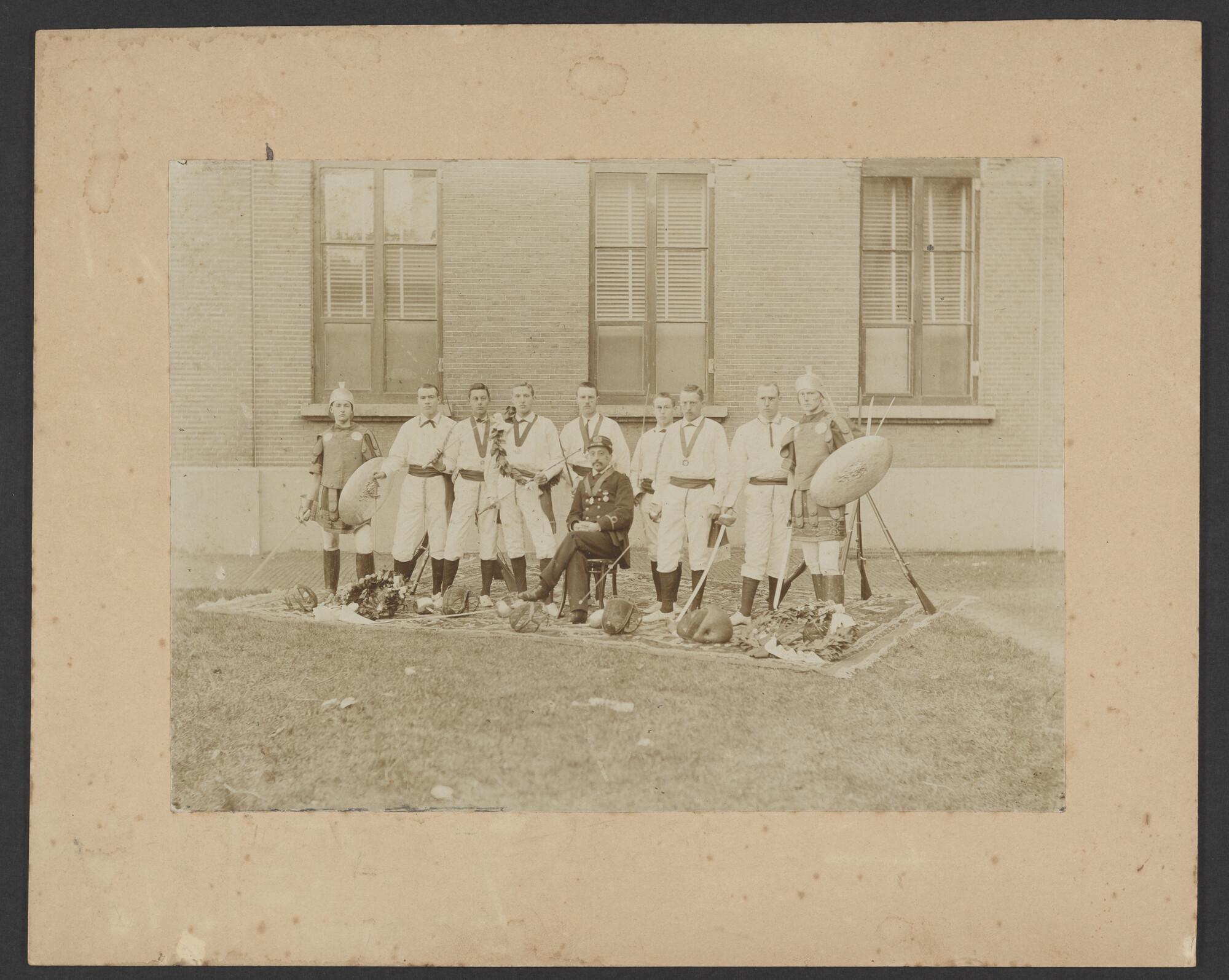 Foto van een groep poserende adelborsten, Willemsoor...
