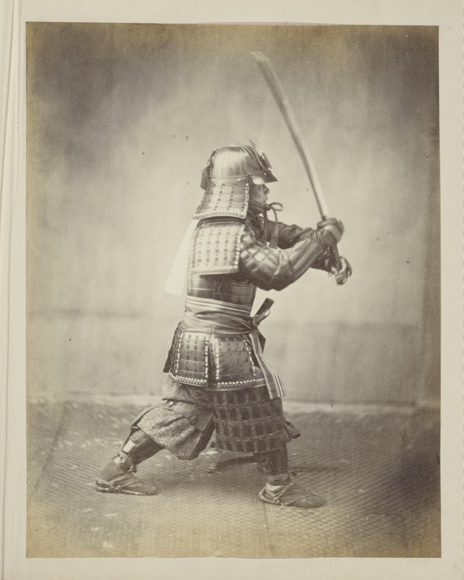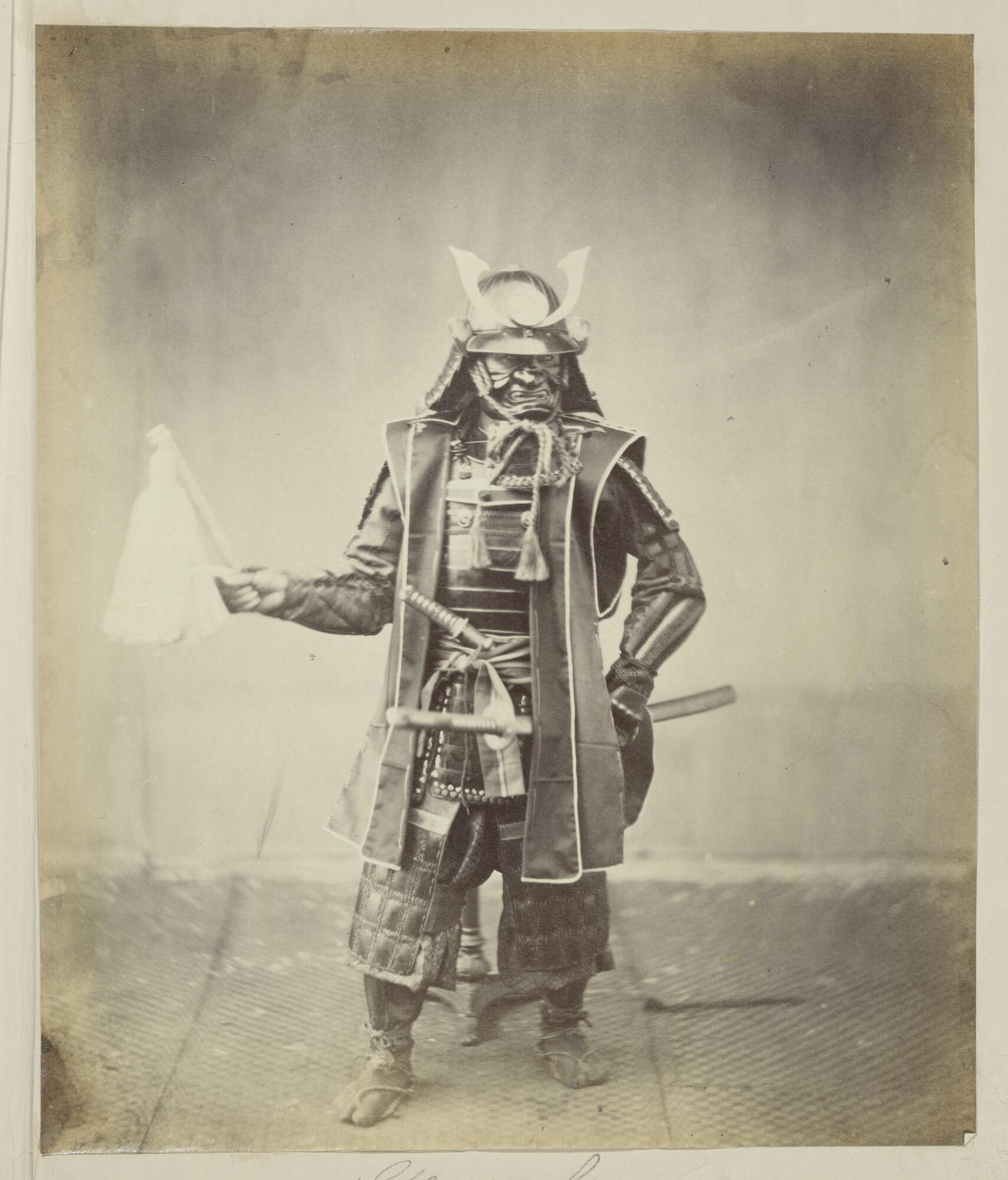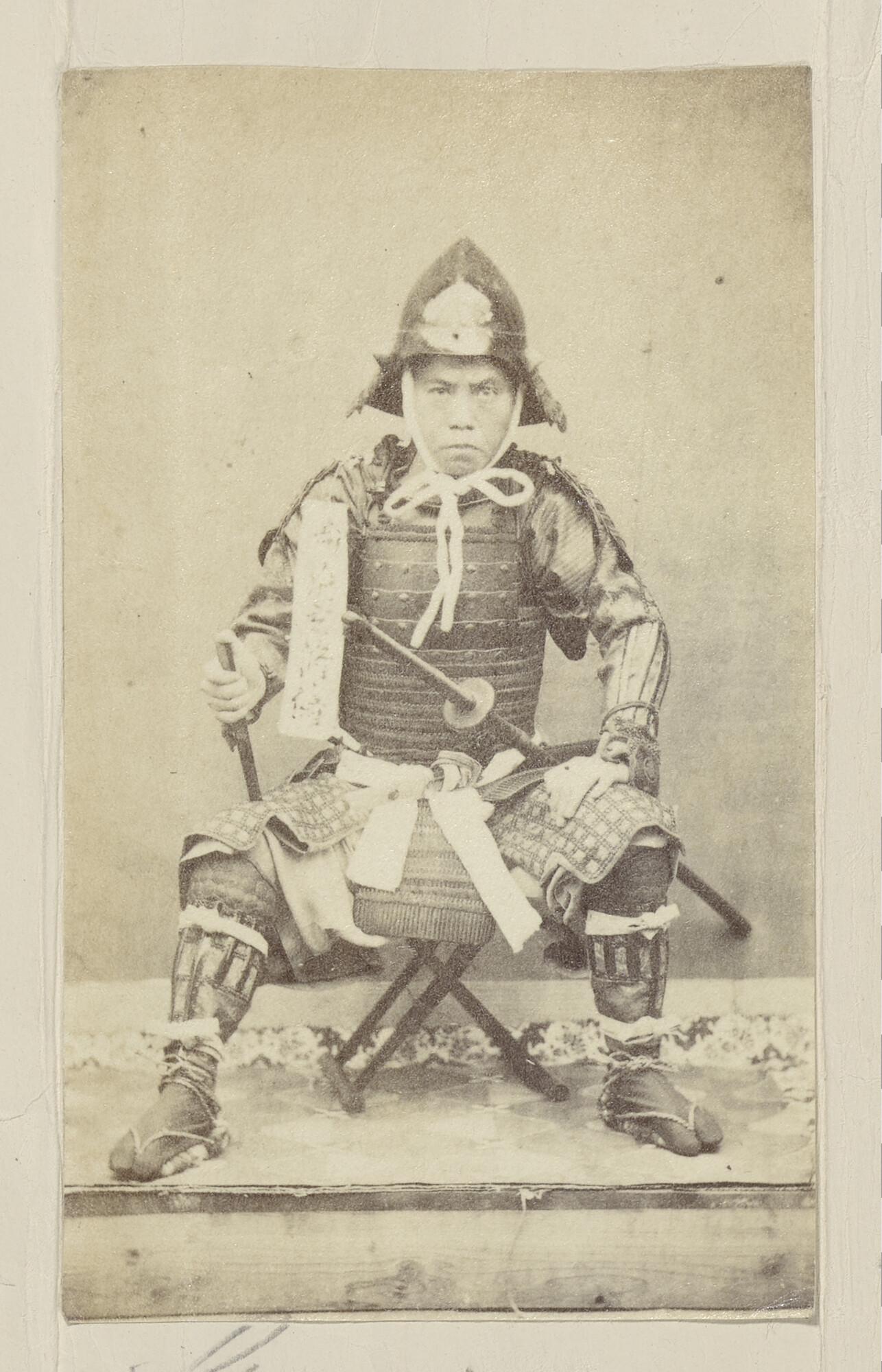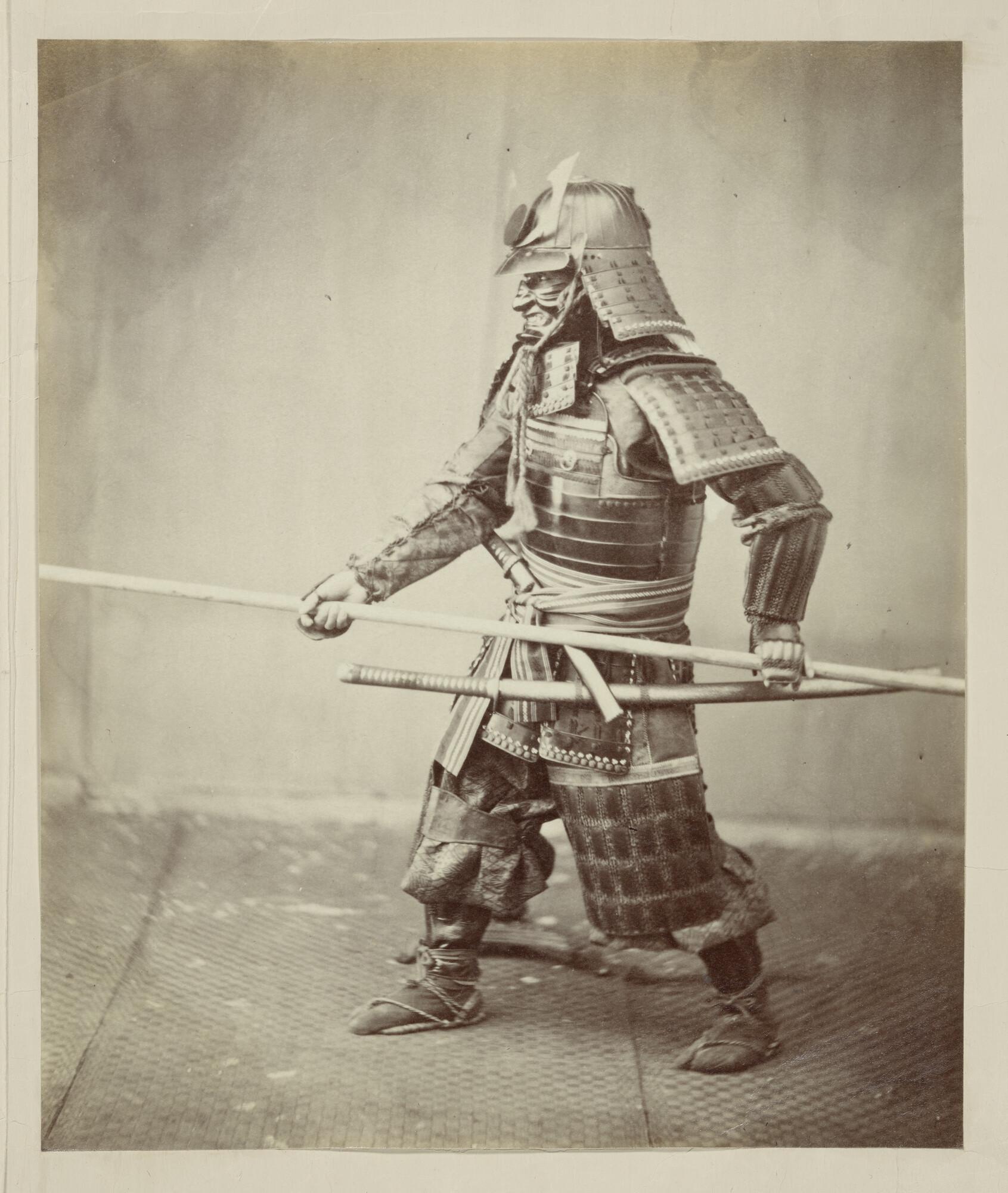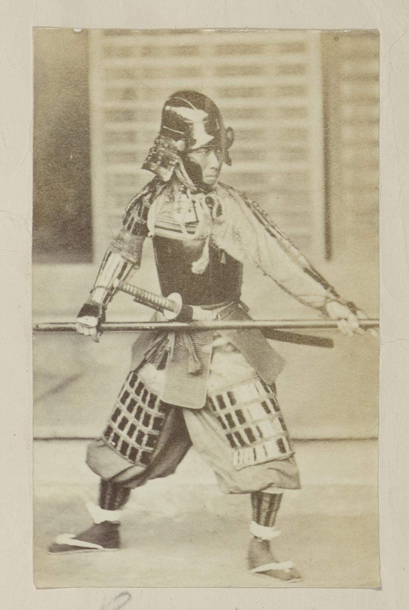 Foto van de samurai Shigeaki Kubota in gevechtstenue