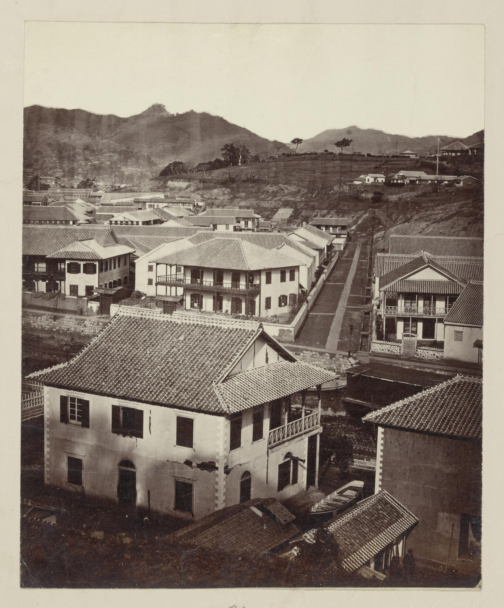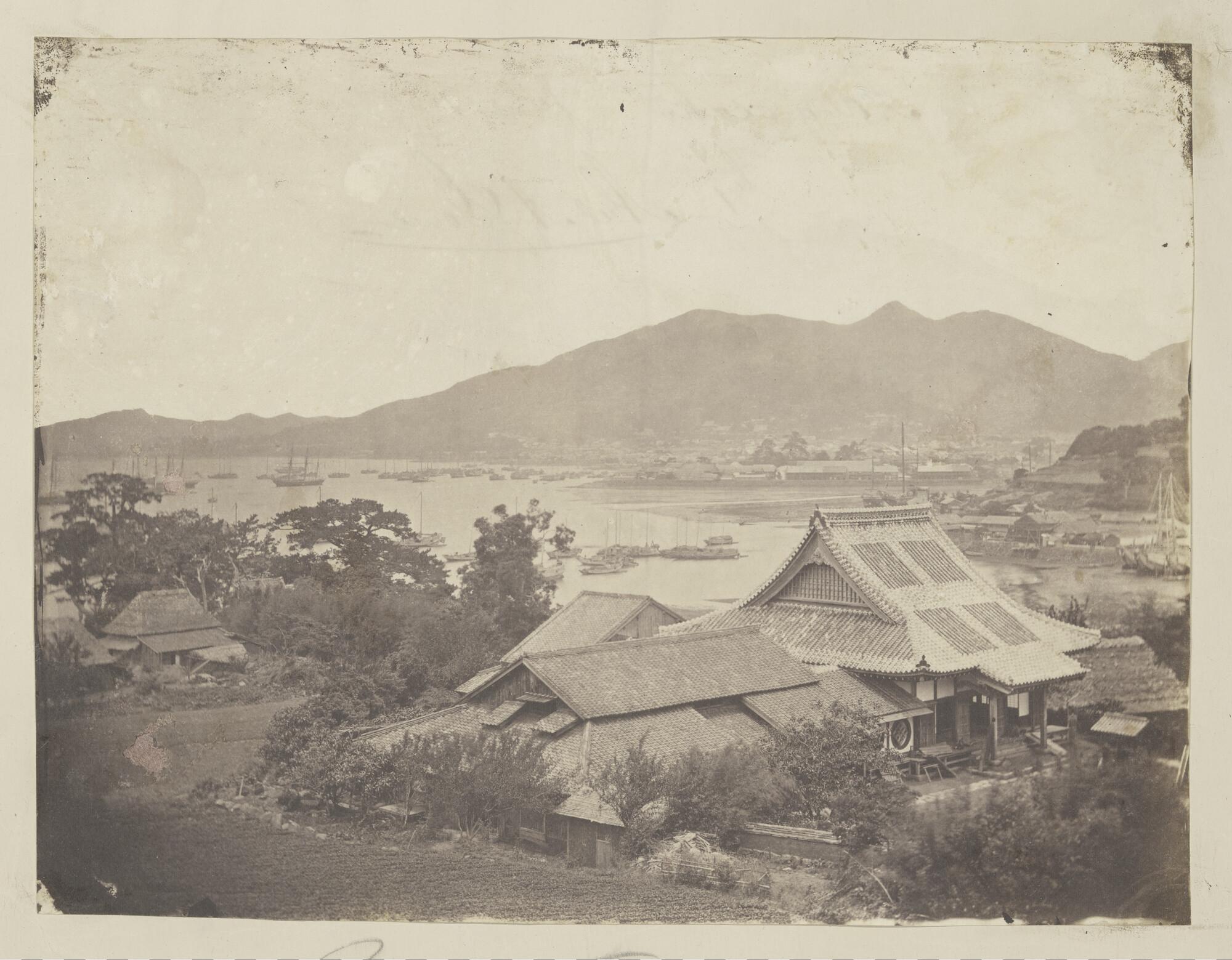 Foto van Deshima en het Nederlandse consulaat, gezie...