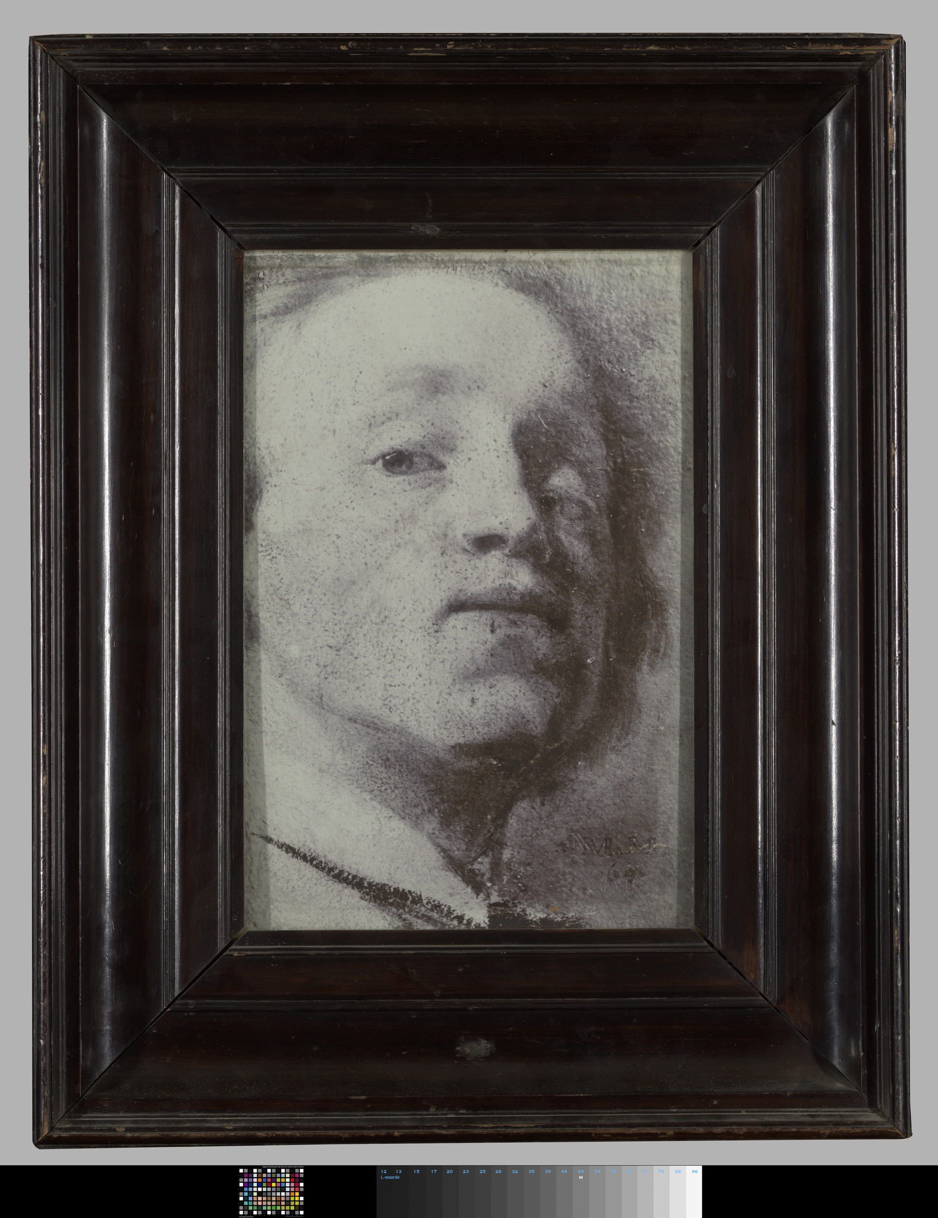 Fotoreproductie van een getekend zelfportret van M.M...
