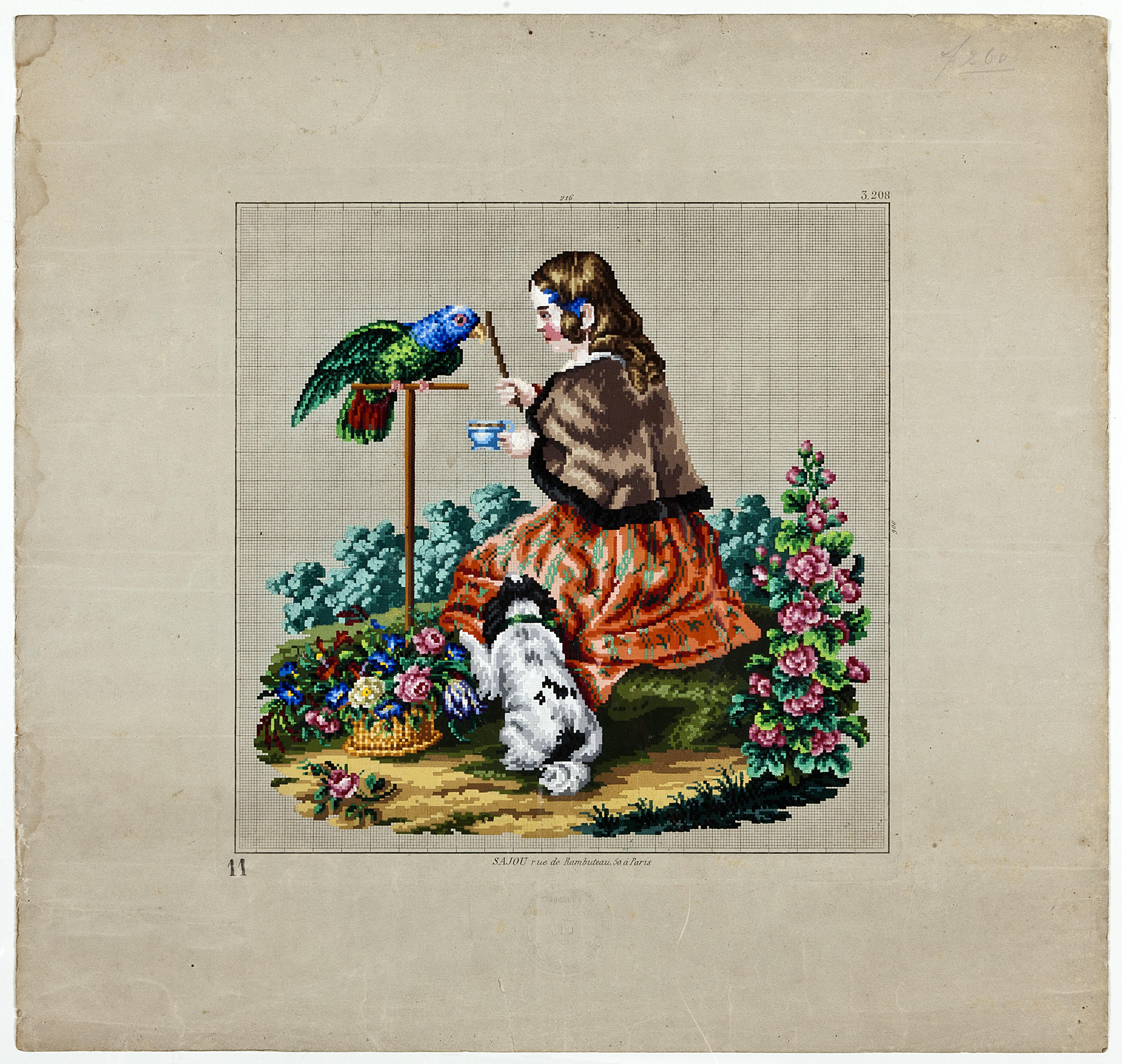 Ingekleurd borduurpatroon Sajou nr. 3208, circa 1850