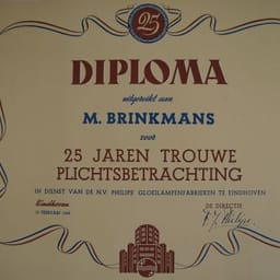 Diploma 25 jaren dienst N.V. Philips Gloeilampenfabr...