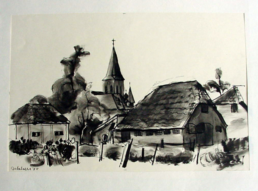 Tekening op papier met Oost-Indische inkt van Wehl d...