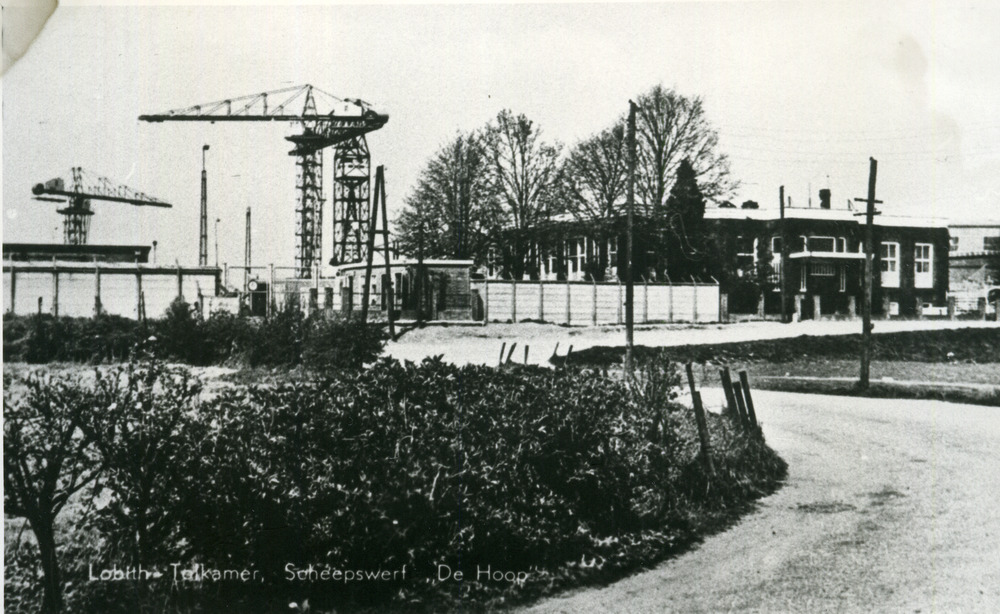 Zwart-wit foto van de scheepswerf 'De Hoop' te Tolka...