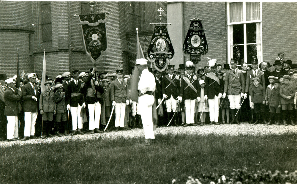 Zwart-wit foto van de Schutterij Eensgezindheid in A...