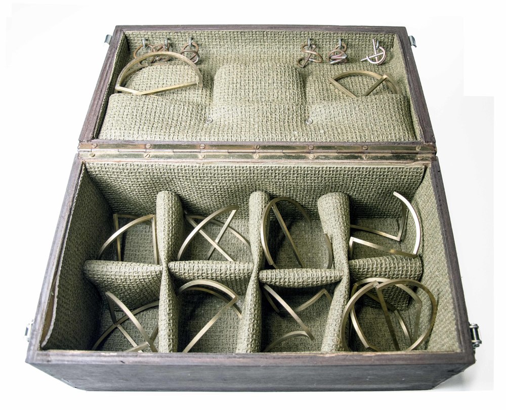 kist met 13 grotere en 6 kleine ‘rolobjecten’