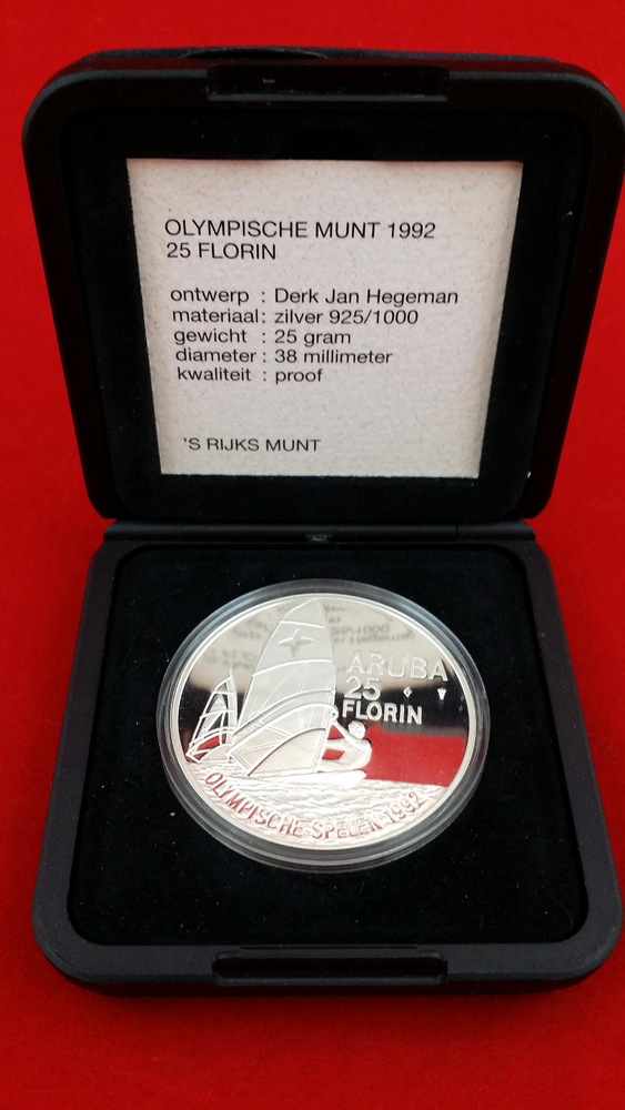 Zilveren Olympische Aruba 25 Florijn gedenkmunt 1992...