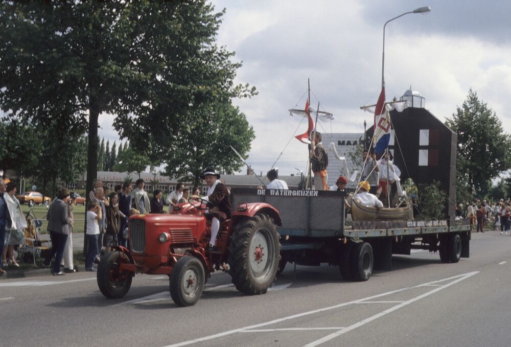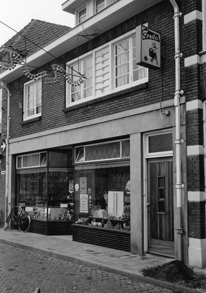 Ondernemers uit de Hondegatstraat poseren bij ereboog