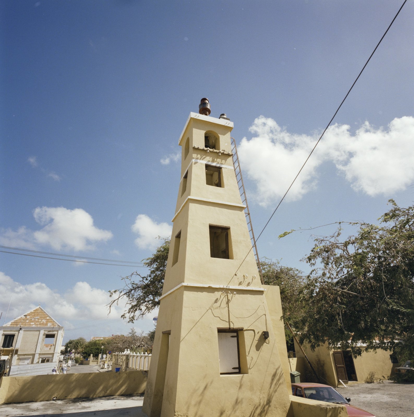 Overzicht van de 10 meter hoge stenen vuurtoren van ...