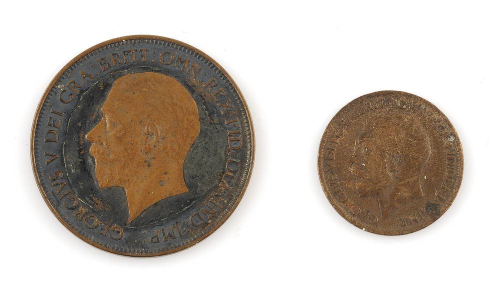 twee munten: farthing; one penny