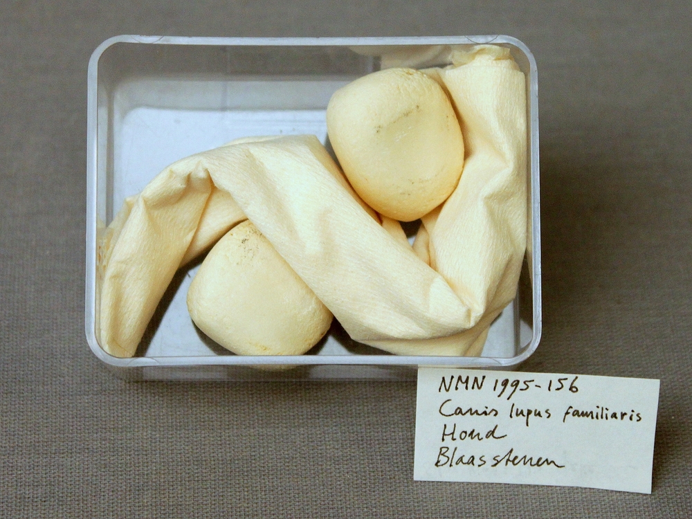 Hond; 2 blaasstenen
