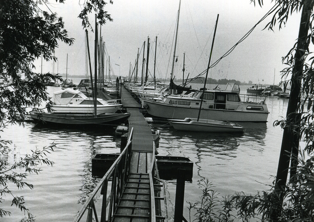 Zwart-wit foto van de jachthaven De Byland te Tolkam...