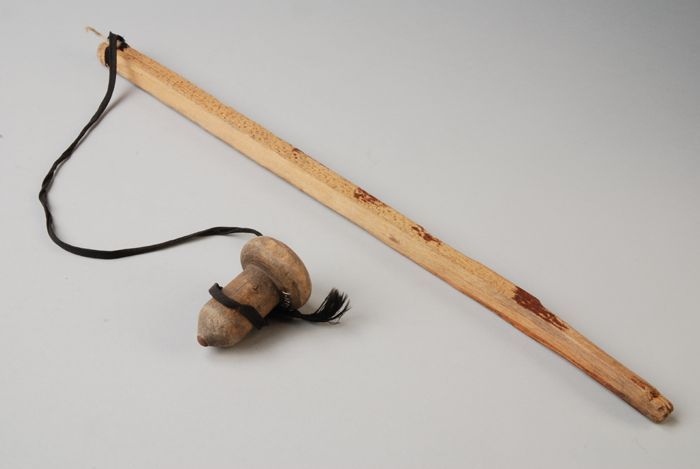 Paddenstoelvormige zweeptol (1) van hout met houten ...