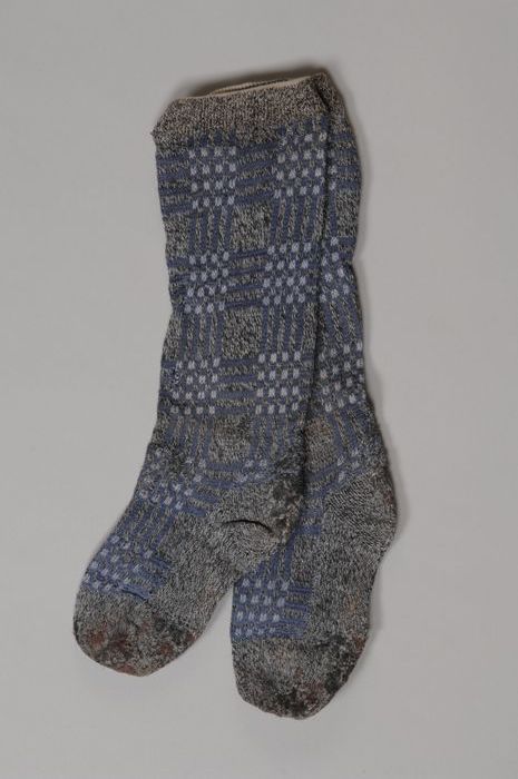 Kinderkniekous van gemêleerde grijze wol met ingebre...