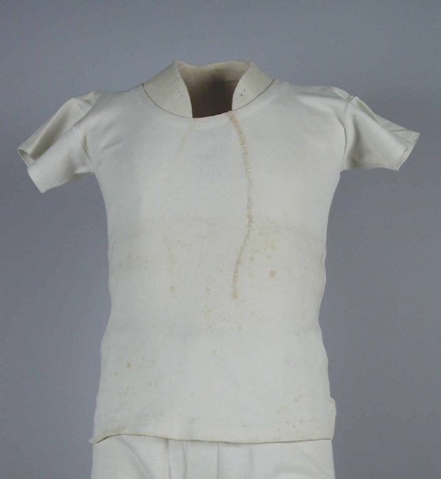 Kinderhemd van wit tricot katoen met ronde hals en k...