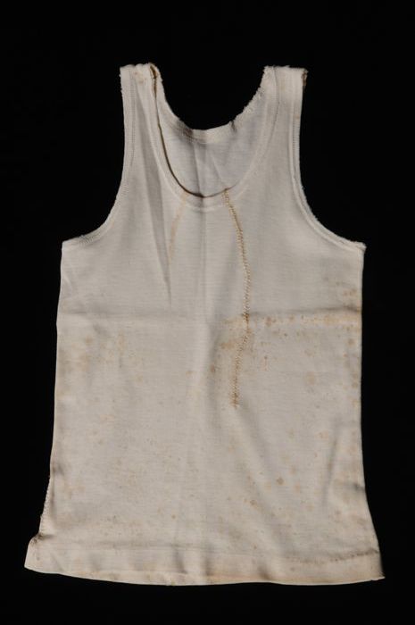 Mouwloos kinderhemd van wit tricot katoen met ronde ...