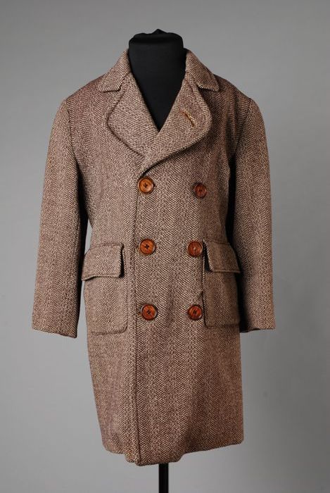 Kindermantel, halflange jas van bruine wol met dubbe...