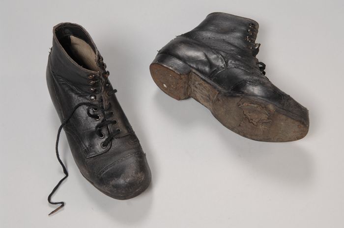 Zwarte leren enkelhoge kinderschoenen met vetersluiting