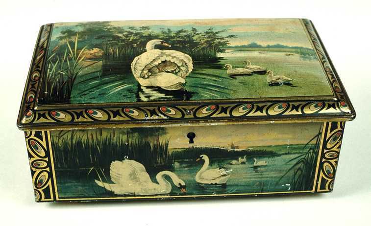 Rechthoekig blik met scharnierend deksel, veelkleurig