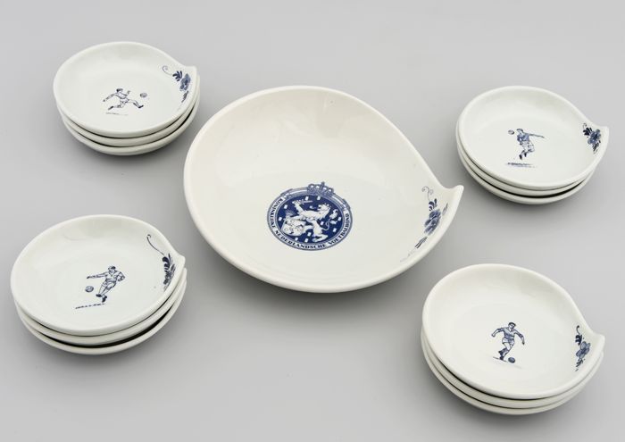 Delfts blauw pindastel, bestaande uit schaal met KNV...