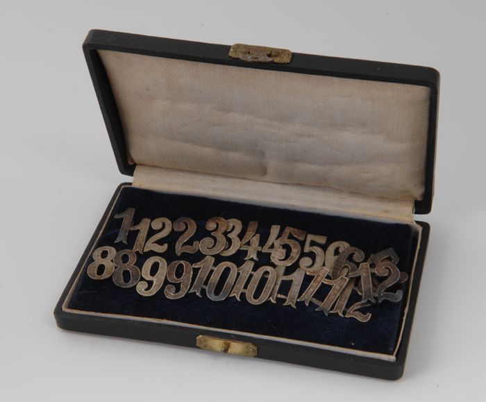 Twee series van twaalf verzilverde cijfers (1 t/m 12...