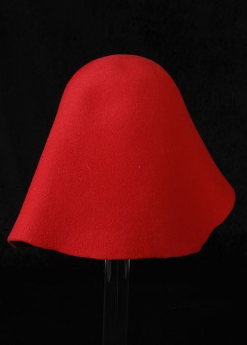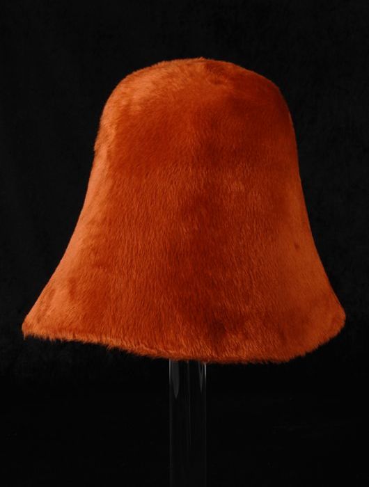 Cloche van oranje-rood geruwd vilt, halffabrikaat
