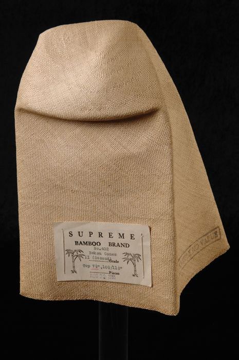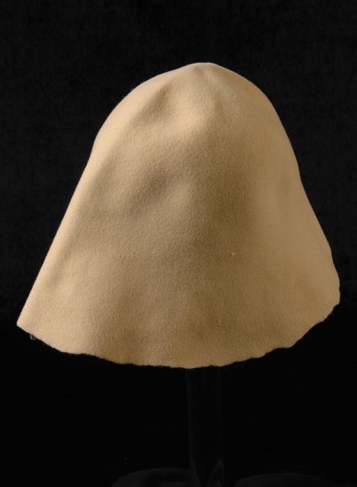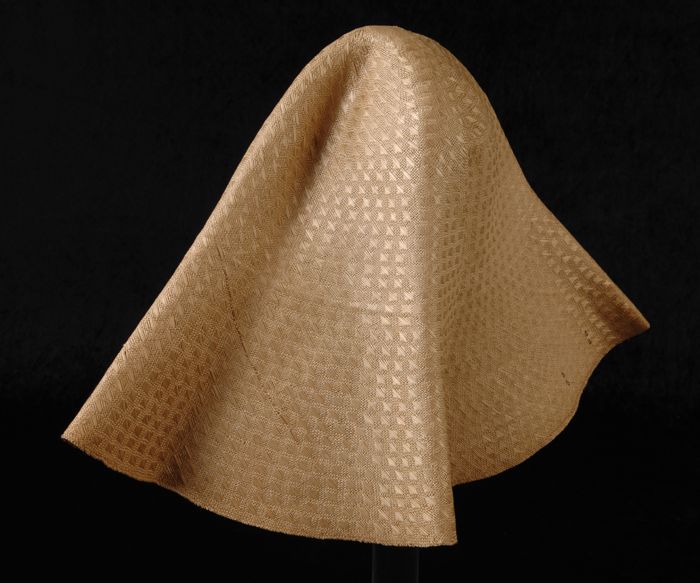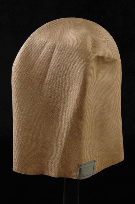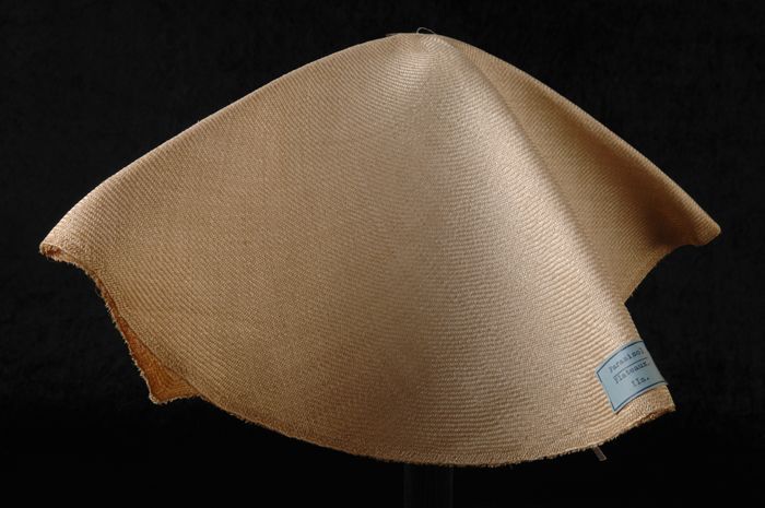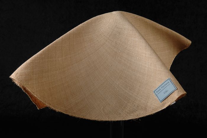 Cloche van stro, scheef gevouwen, halffabrikaat