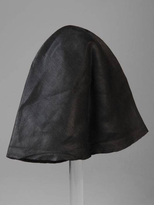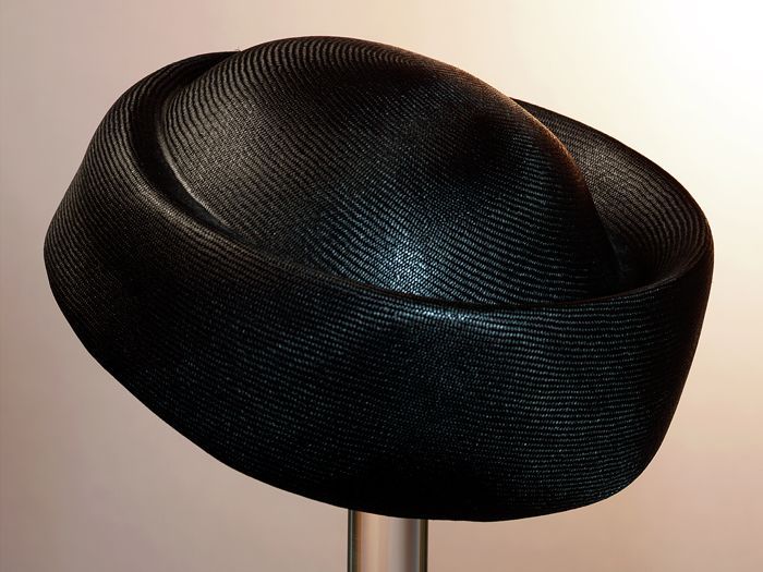 Cloche van zwart stro, gevouwen, halffabrikaat